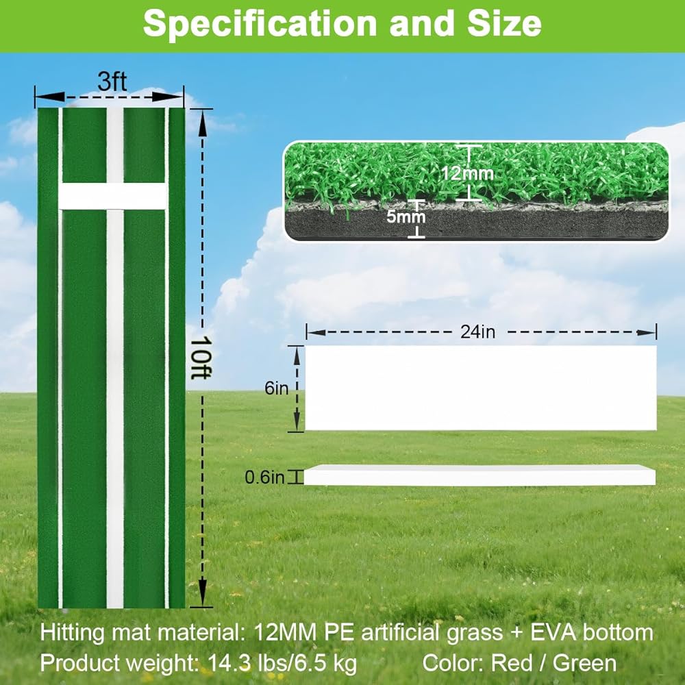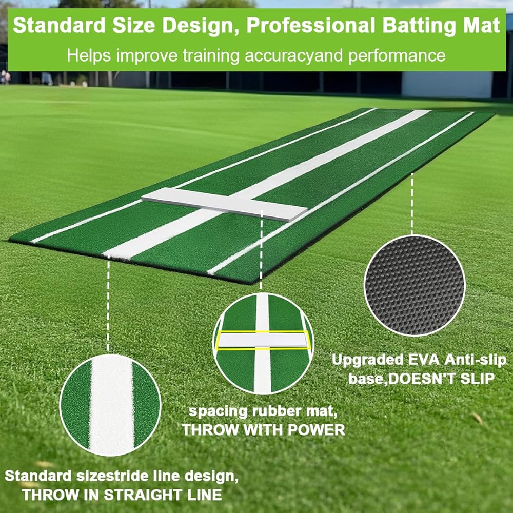 ✨️【سجادة الضرب الاحترافية】تتميز حصيرة رمي البيسبول بأبعاد إجمالية تبلغ 10 × 3 أقدام، مما يوفر مساحة واسعة لممارسة مجموعة متنوعة من الملاعب. يمكن أن تساعدك السجادة المطاطية ذات الحجم القياسي وخطوط الخطوات المصممة لتعزيز قوة الرمي في تحسين الدقة والأداء.