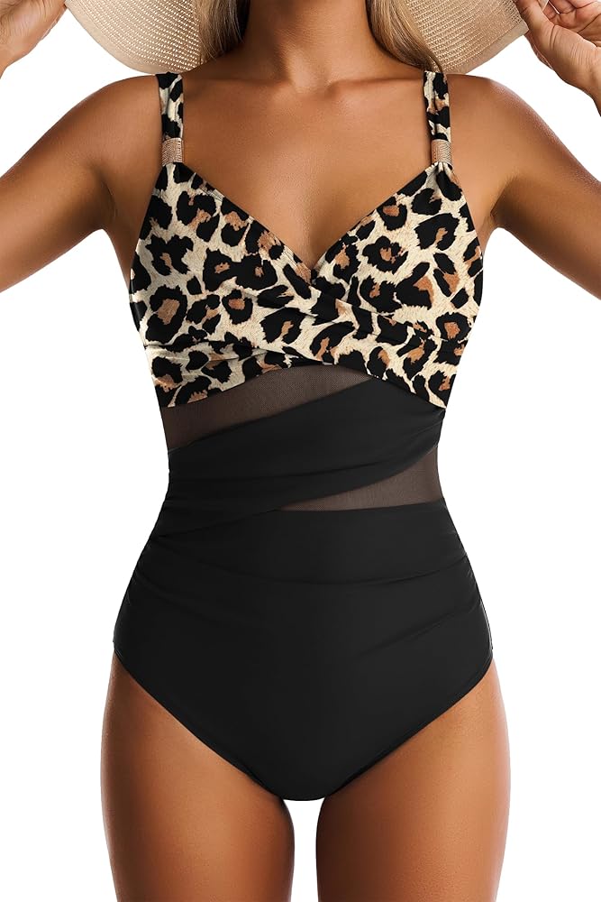 بدلة سباحة نسائية برقبة على شكل حرف V: تصميم خط رقبة على شكل حرف V مع مشابك حزام معدنية ذهبية، مما يعزز أناقة الطوق بينما يبدو التصميم العام رائعًا للغاية، مما يضيف لمسة نهائية مثالية