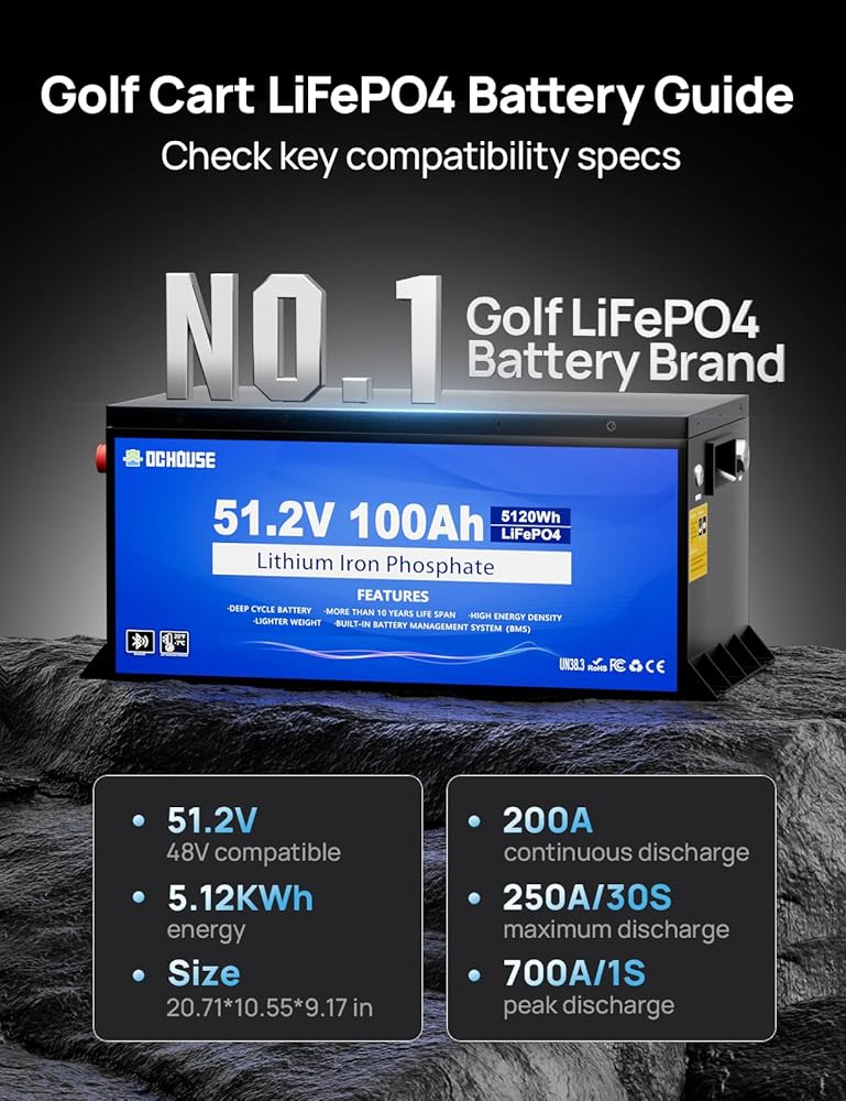 أداء الطاقة والتوافق الواسع: بطارية ليثيوم 48 فولت 100 أمبير LiFePO4، مصممة خصيصًا لعربات الجولف، تتميز بقدرة 200 أمبير BMS، وقدرة تفريغ 2C (250 أمبير/30 ثانية) وتيار الذروة (700 أمبير/1 ثانية). يوفر تسلقًا وتسريعًا قويين، مما يزيل مخاوف انقطاع التيار الكهربائي. متوافقة تمامًا مع عربات الجولف 48 فولت مثل Yamaha وEZ GO وClub Cart وما إلى ذلك. نظرًا لاختلاف تصميمات حجرة البطارية، قد يحدث ملاءمة غير مناسبة. تحقق من حجم بطارية عربة التسوق قبل الشراء أو استعد لتعديلها بنفسك.