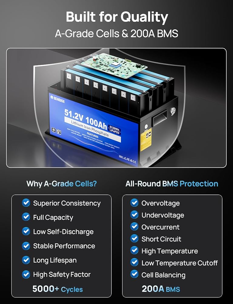 سهولة التركيب والترقية السريعة: أحدث ثورة في عربة الجولف الخاصة بك! تحل بطارية الليثيوم 48 فولت هذه محل بطاريات الرصاص الحمضية الثقيلة 6-8 فولت 100 أمبير في الساعة في تركيب واحد بسيط وخالي من الأسلاك. استمتع بتخفيض الوزن بنسبة 74%، وحجم أصغر بنسبة 60%، ومدى ممتد يصل إلى 56 ميلًا (7-9 جولات من 18 حفرة بدون مجهود). تدوم 8 مرات أطول من بطاريات الرصاص الحمضية، أكثر من 4000 دورة عميقة تضمن أداءً خاليًا من الصيانة وموثوقية طويلة المدى