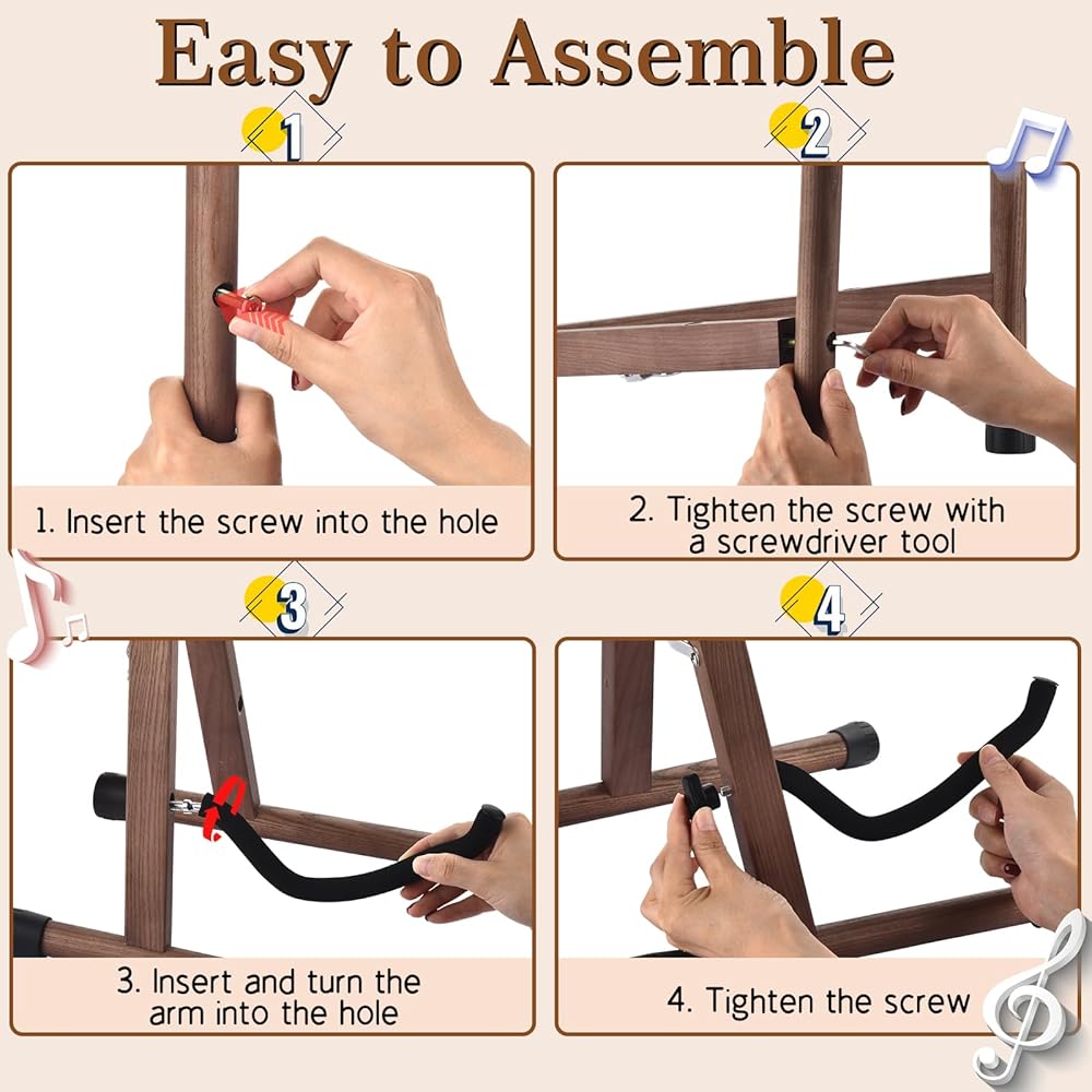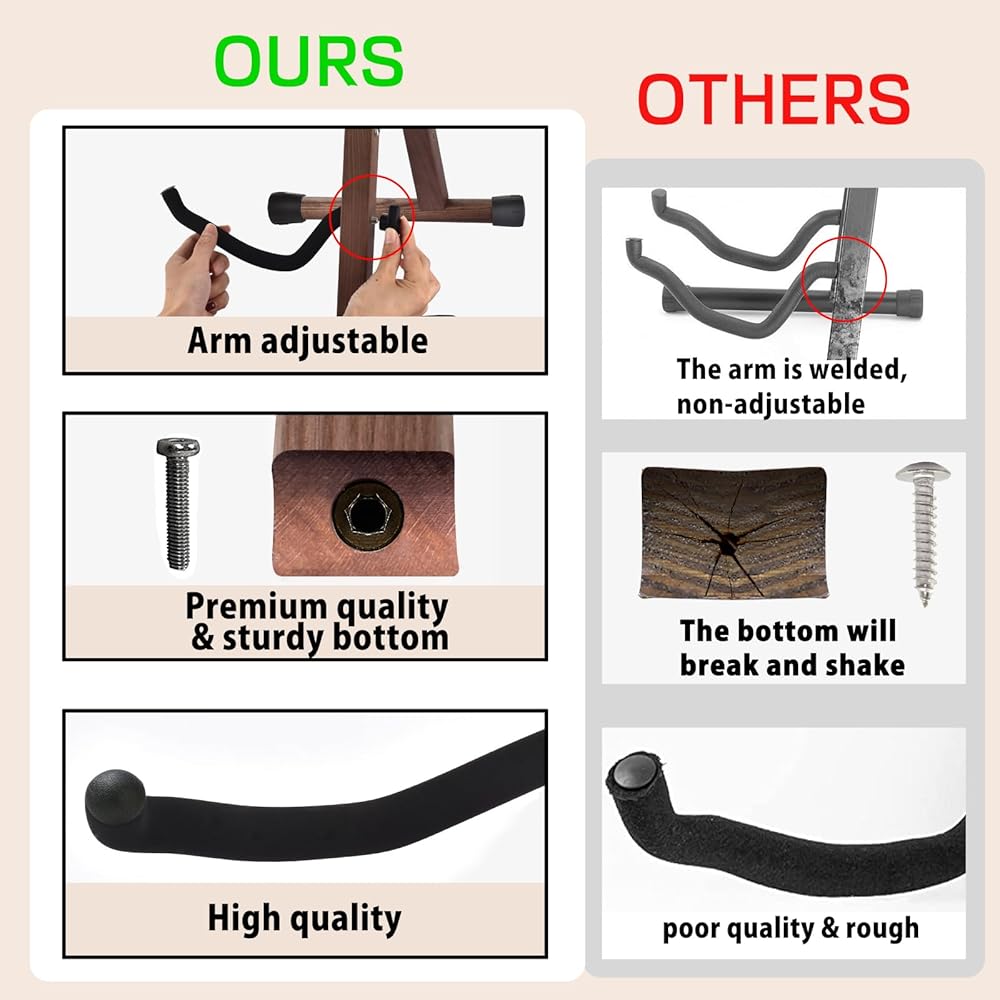 هيكل من الخشب الصلب الفاخر: مصنوع من خشب صلب متين وعالي الجودة، يوفر حامل الجيتار هذا ثباتًا فائقًا وجمالاً طبيعيًا وأنيقًا. إنها أقوى وأكثر موثوقية من الحوامل البلاستيكية أو المعدنية الرخيصة، مما يكمل آلتك بشكل جميل.