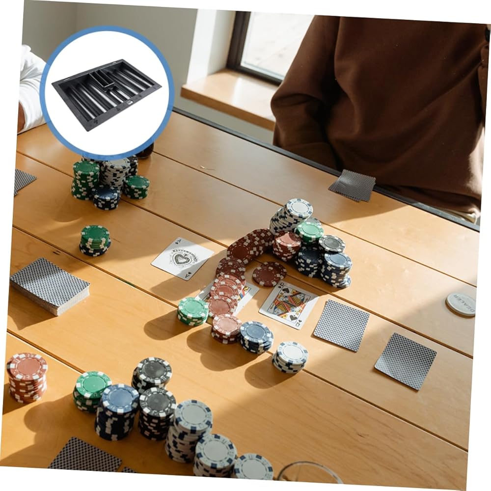 - صينية شرائح الطاولة: تساعدك على تنظيم وتخزين الرقائق والبوكر، والحفاظ على أغراضك مرتبة ومرتبة. إنه مساعد لتوفير المساحة! صينية شرائح للطاولة