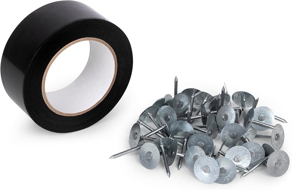 مجموعة تركيب الفينيل المحملة بكميات كبيرة - 100 مسمار بغطاء عريض مع شريط درز رول واحد لتركيب الفينيل المحمل بكميات كبيرة