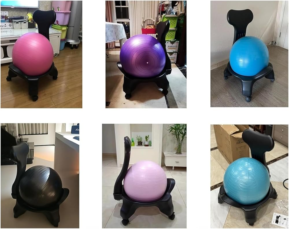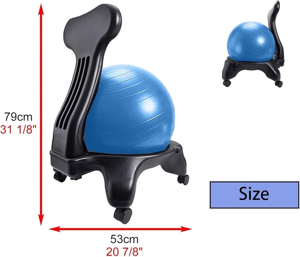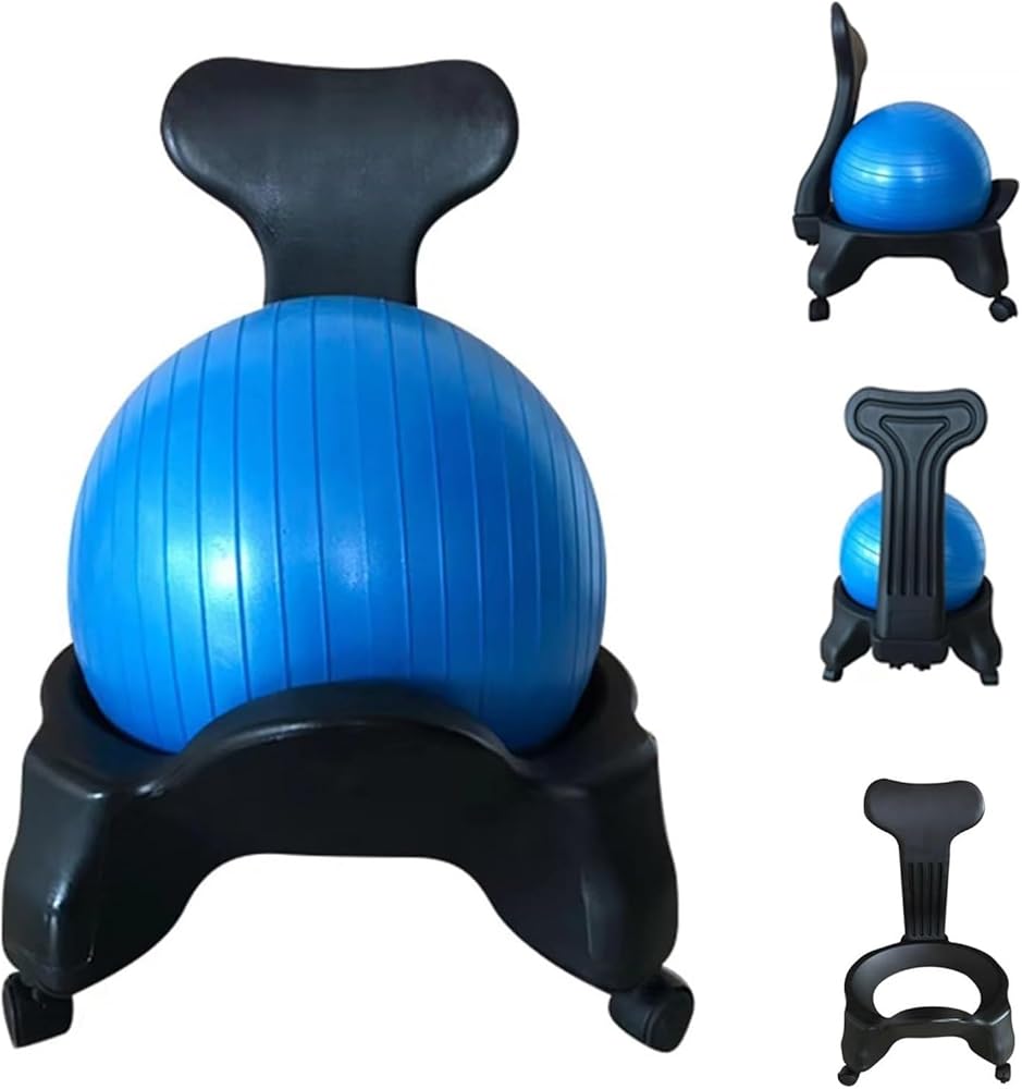 كرسي كرة اليوجا، كرة اليوجا، كرة التمرين، كرسي كرة اليوجا، كرسي كرة أزرق مع دعم خلفي، كرسي كرة تمرين للمكتب والفصول الدراسية والمنزل، كرات يوجا لتخفيف الحمل