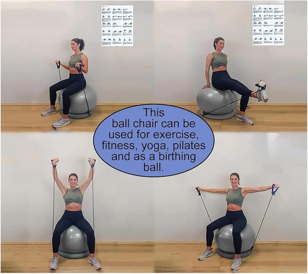 كرسي كرة اليوجا، كرة اليوجا، كرة التمرين، كرسي كرة اليوجا، كرسي كرة للتمرين، كرسي كرة لليوجا/اللياقة البدنية، كرسي كرة للثبات في المكتب والمنزل والفصول الدراسية، مقعد كرة للحمل مع مضخة تخفيف (قطر 55 سم (21 5/8