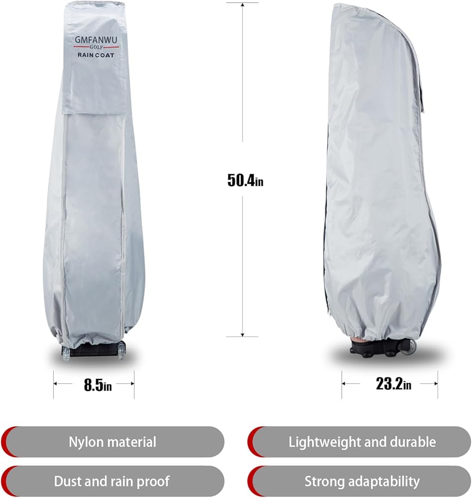 • مادة النايلون‌‌: مصنوعة من النايلون المقاوم للماء، وتوفر حماية ممتازة ضد المطر والرطوبة والغبار، مما يضمن بقاء معدات الجولف الخاصة بك جافة ونظيفة طوال اليوم