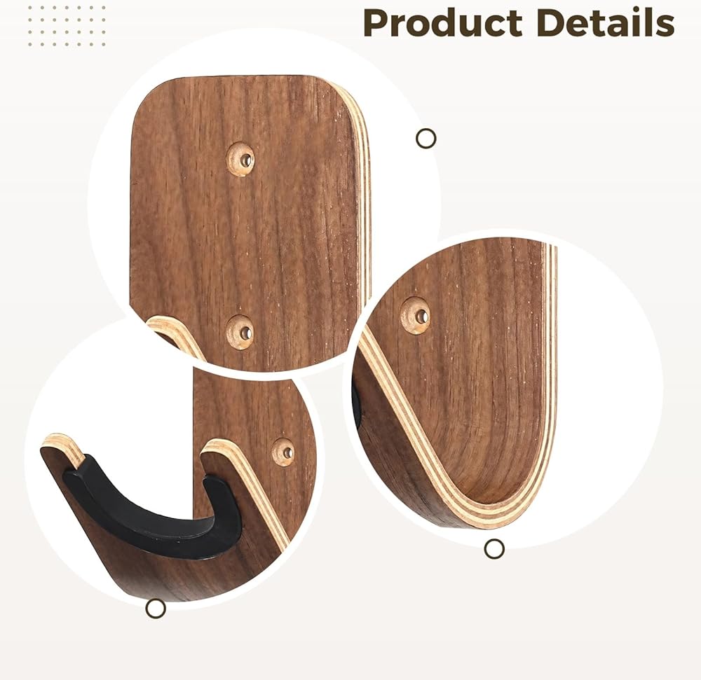 Natural wood construction: made from high-end natural wood, this guitar hanger blends elegance with functionality, offering strong and safe display space for your instrument