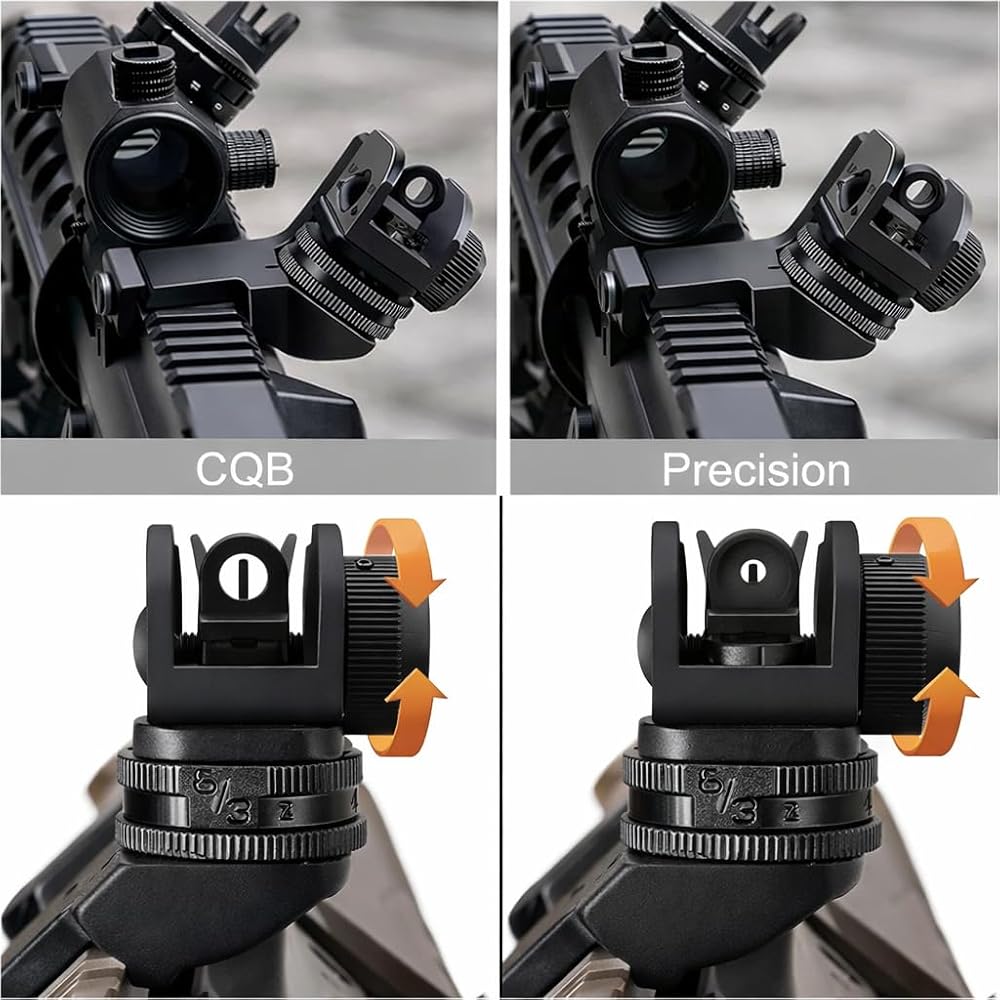 Quick Transition: For a smooth and quick transition between the backup iron sights and the primary optics, these 45-degree flip-up front and rear sights will be an ideal choice.