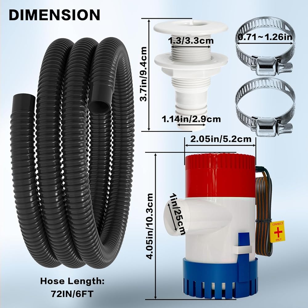 • المواصفات: تدفق مضخة المياه هو 1100 جالون في الساعة، ومعدل التدفق 1100 جالون في الساعة، والجهد 12 فولت تيار مستمر، والرأس 13 قدمًا (4 أمتار)؛ قطر المخرج: 1-1/8 بوصة/29 ملم، طول الكابل: 3.3 قدم/1 متر؛ أقصى أمبير للمفتاح العائم 12 فولت: 20 أمبير؛ الحد الأقصى للأمبير 24 فولت: 10 أمبير؛ الحد الأقصى للأمبير 32 فولت: 8 أمبير؛ طول السلك 3.3 قدم/1 متر، مقاس السلك 18 AWG