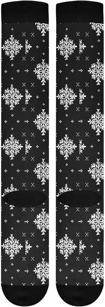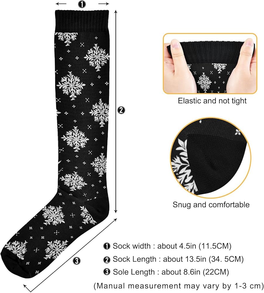 Christmas compression socks Dimensions -- Foot Width: 4.5in, Sole Length: 8.6in, Total Length of Socks: 22.8in. Extremely stretchable, regardless of gender, regular wear can reach the knee position