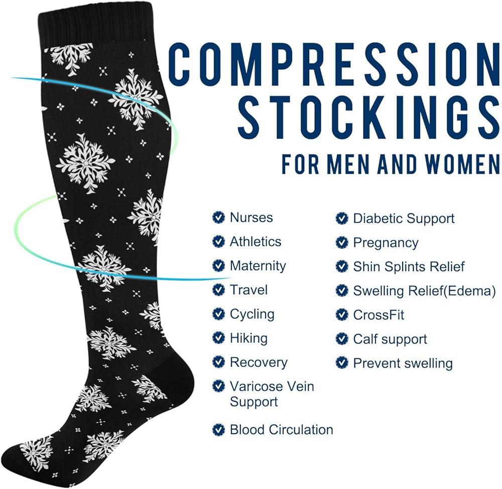 Easy Care -- Machine and hand washable. These holiday compression socks women are carefully made to ensure maximum durability. It will not deform after washes. You can buy with confidence