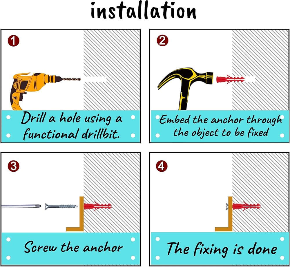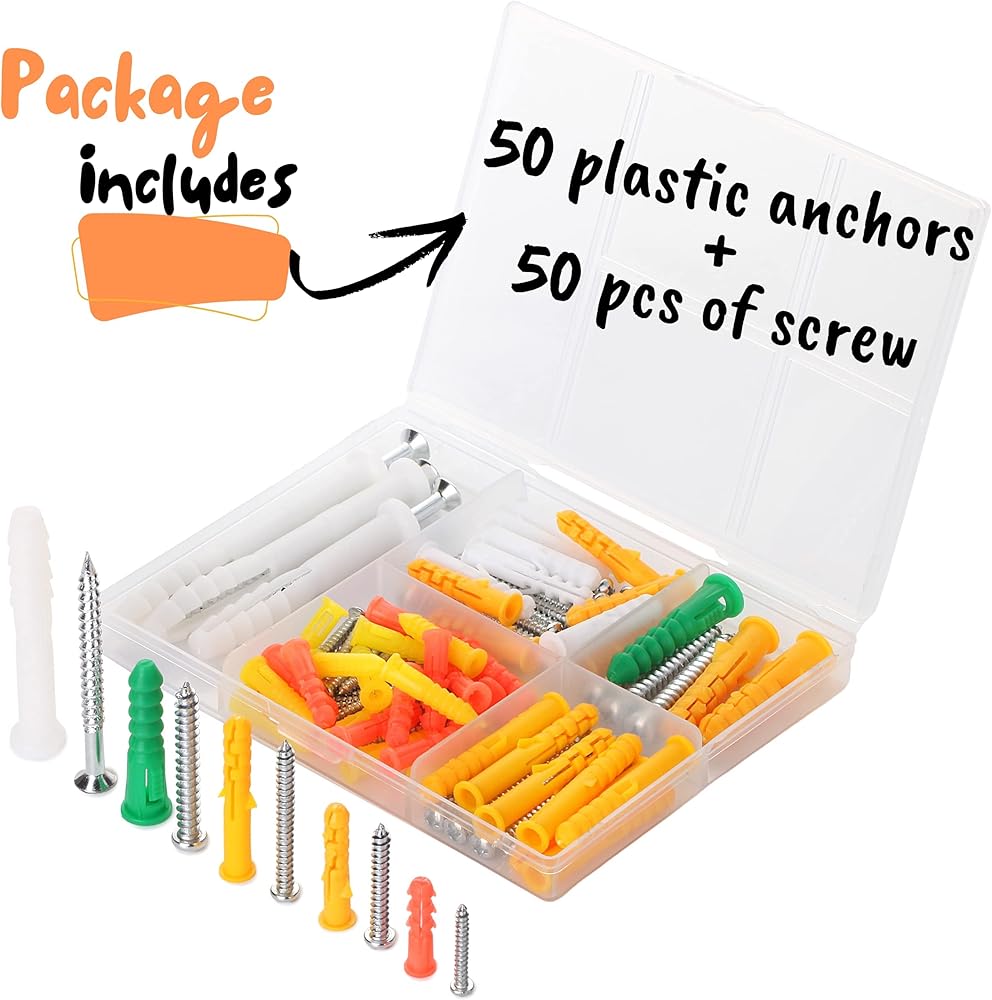 تحتوي العبوة على 50 مرساة بلاستيكية + 50 قطعة من المسمار، إجمالي 100 قطعة.