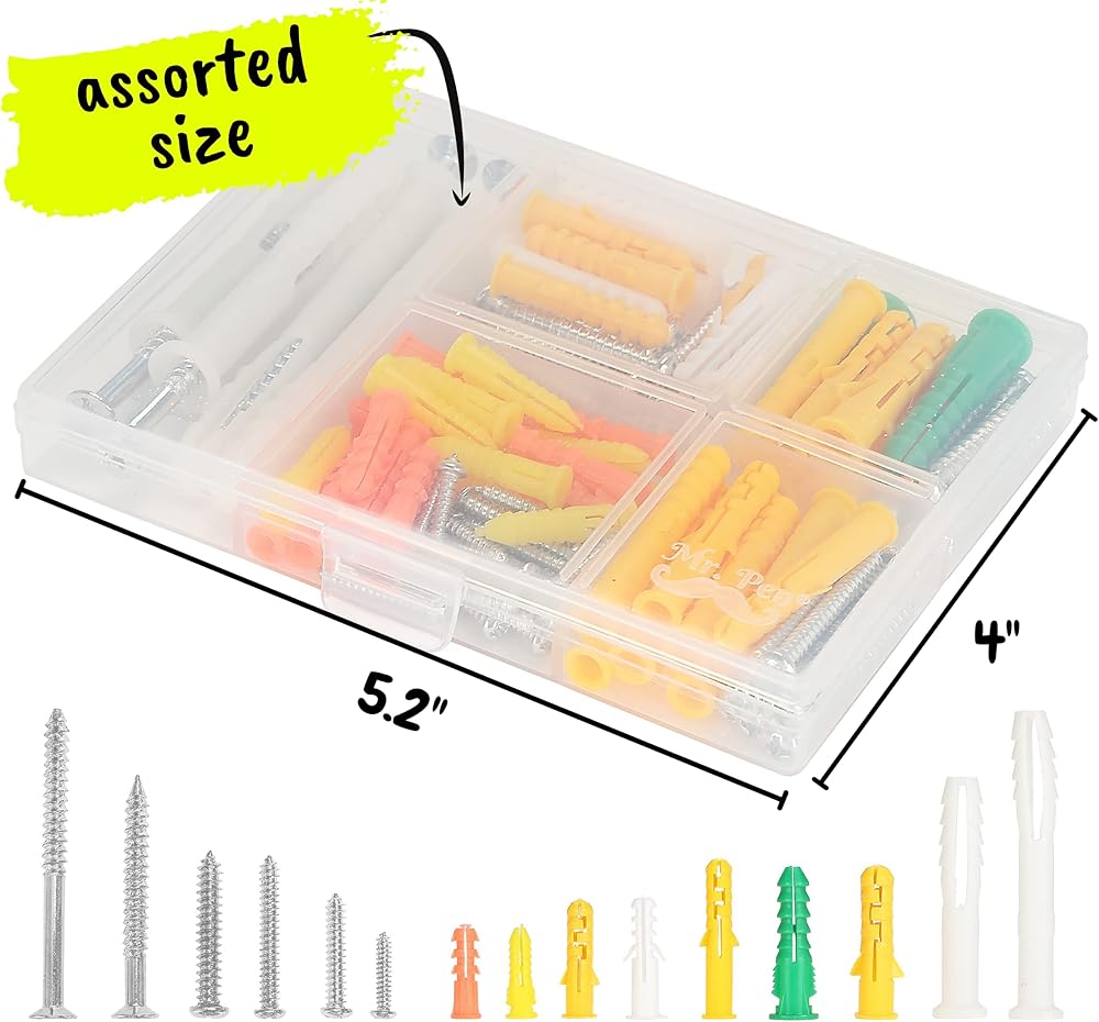 تأتي مجموعة أدوات تثبيت الحائط والمسامير من مستر بين مع صندوق تنظيم بلاستيكي شفاف جيد البناء، والذي يحافظ على البراغي والمثبتات البلاستيكية من كل حجم بشكل أنيق وواضح.