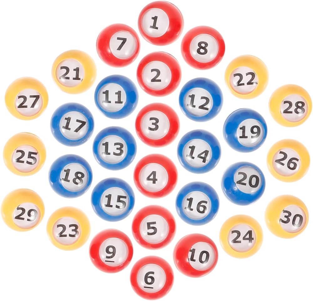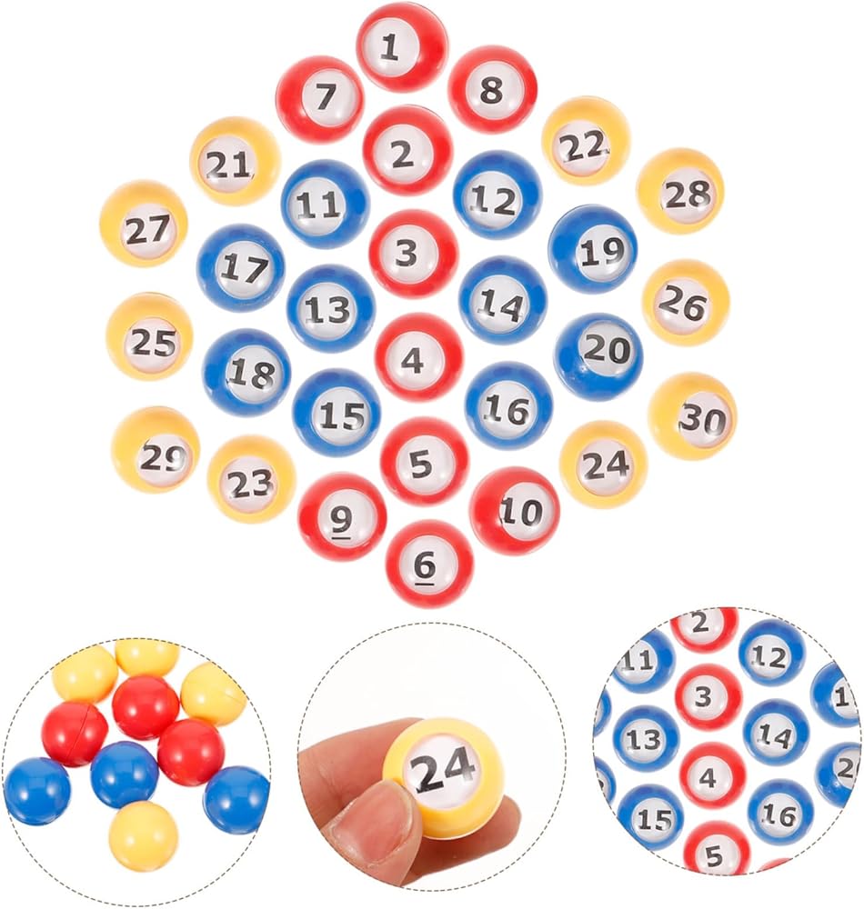 30 قطعة من كرات البنغو البلاستيكية لألعاب اليانصيب أرقام لألعاب الحفلات ورسم السحب
