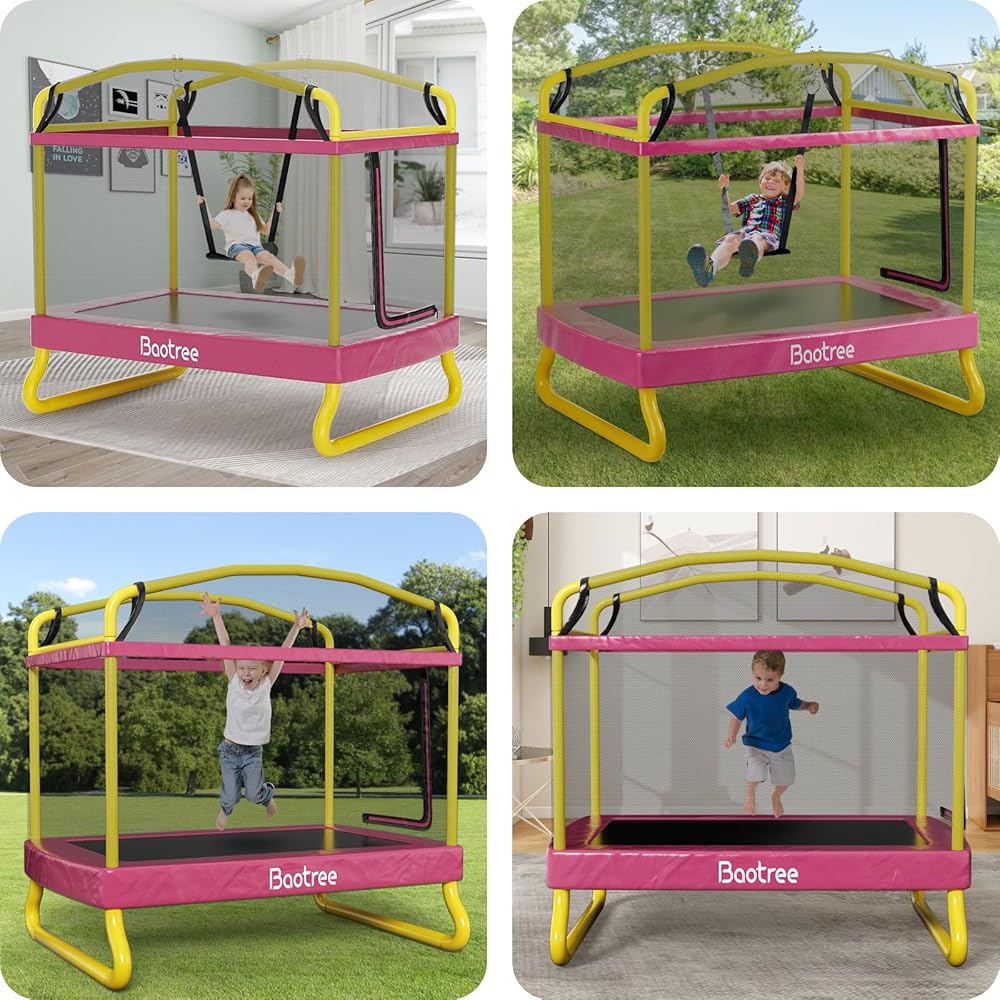 【يتضمن الأرجوحة】: يأتي هذا الترامبولين المستطيل مع أرجوحة قابلة للإزالة ليستمتع طفلك بالقفز والتأرجح. بالإضافة إلى ذلك، يوفر المقعد المتأرجح القوي والمتين، والحلقات الفولاذية الكربونية عالية القوة، والحبال سهلة الإمساك تجربة تأرجح مستقرة وآمنة.