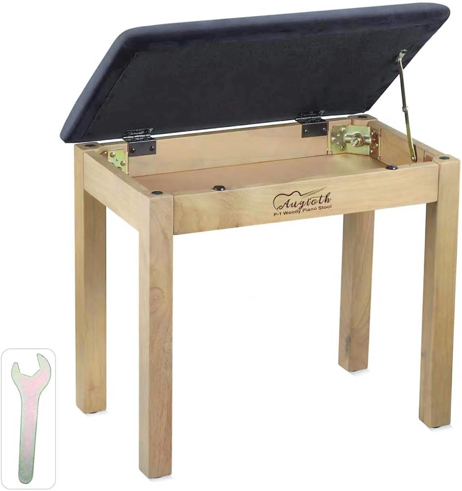 مقعد بيانو من الخشب الصلب، مقعد بيانو من خشب الزان مع مساحة تخزين، مقعد بيانو من لوح خشبي غير مركب، مقعد بيانو من الخشب الصلب للوحة المفاتيح وخزانة الكتب (خشب بيرليوود)