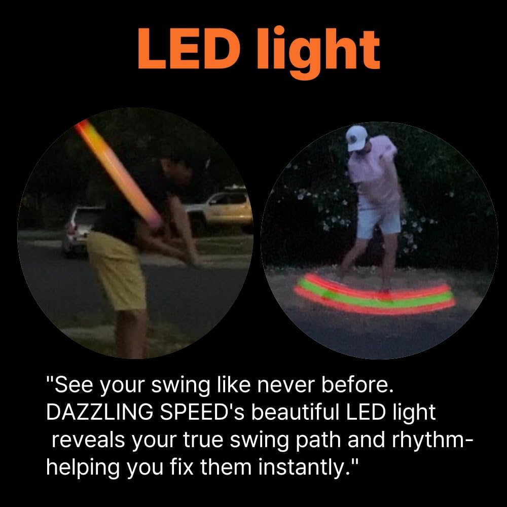 أداة مساعدة مدرب أرجوحة الجولف المبهرة - عصا سوط للإحماء والسرعة مع ضوء LED لتحسين التأخر والطاقة والإيقاع والتوازن