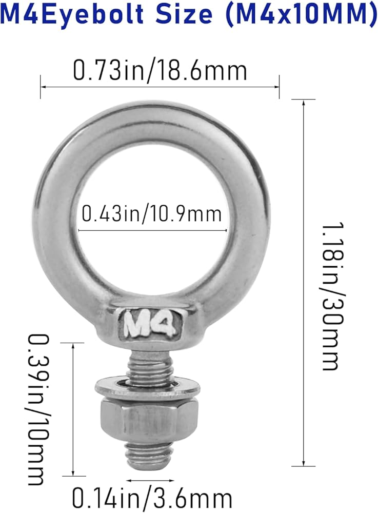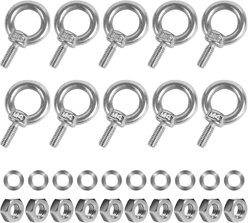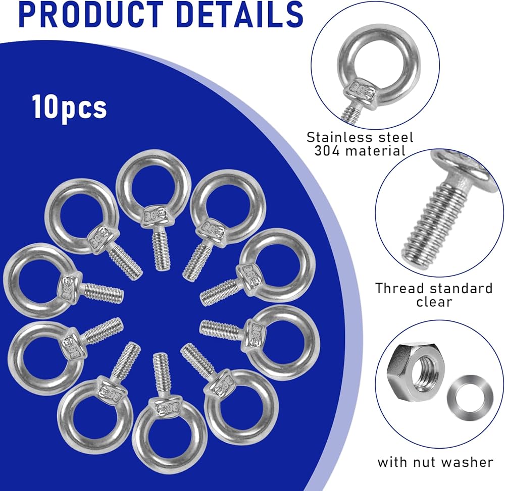 تشمل العبوة - سوف تحصل على 10 قطع من مسامير العين المصنوعة من الفولاذ المقاوم للصدأ. الحد الأقصى لوزن برغي الخطاف الواحد هو 50 كجم.