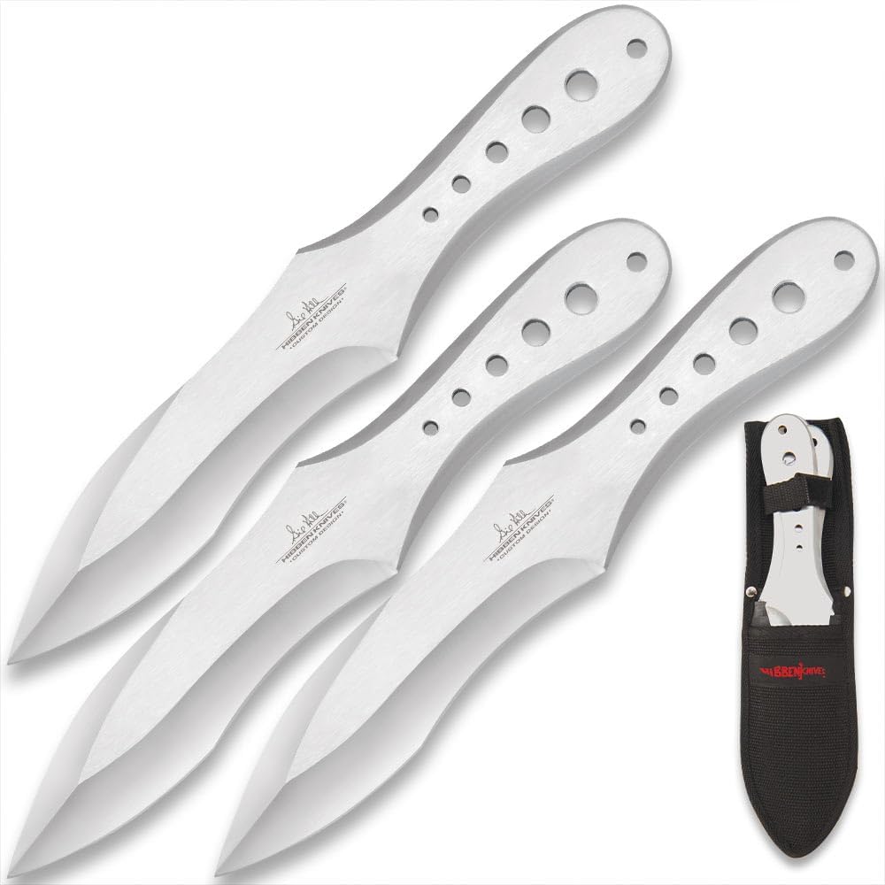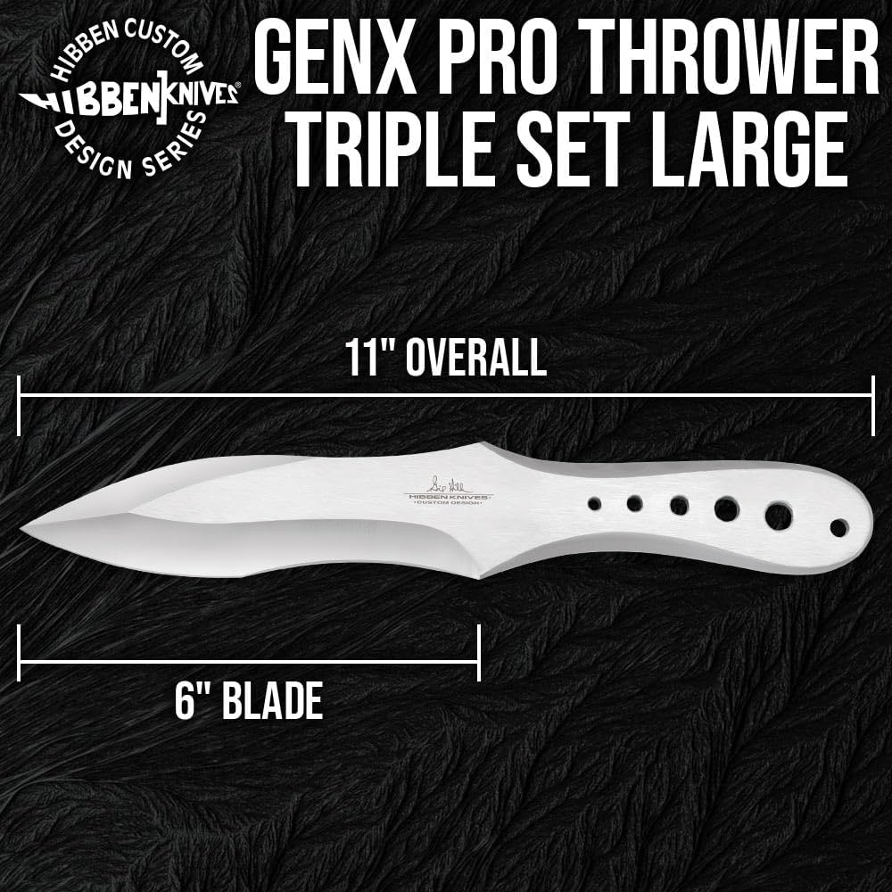 مجموعة جيل هيبين جينكس برو قاذف ثلاثية كبيرة | 3 رمي السكاكين | قطعة واحدة من الفولاذ المقاوم للصدأ | متوازن تمامًا للرمي | يشتمل على غمد نايلون متين مع بطانة صلبة | 11 بوصة الطول الإجمالي