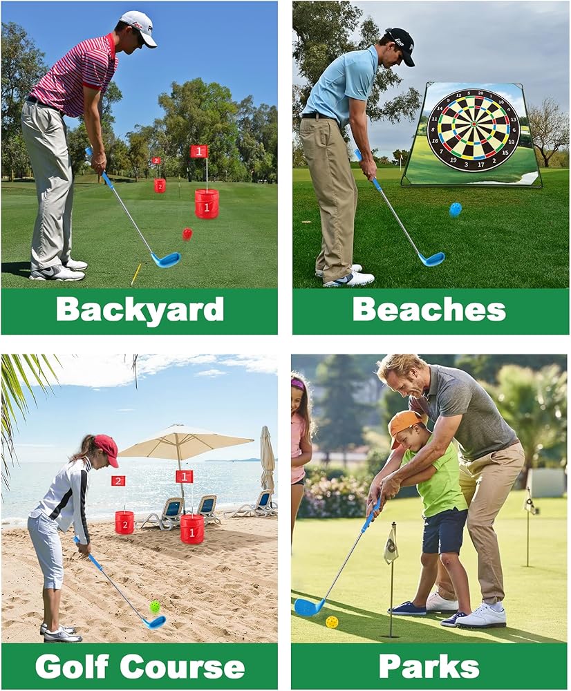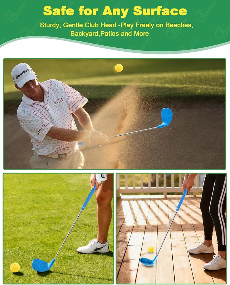 • تجربة لعب جولف أصلية: مصممة لتقليد ملمس نوادي الجولف التقليدية، توفر نوادي الجولف الخارجية هذه تجربة جولف واقعية، مما يجعلها مثالية لألعاب الفناء الخلفي أو أنشطة الحديقة.