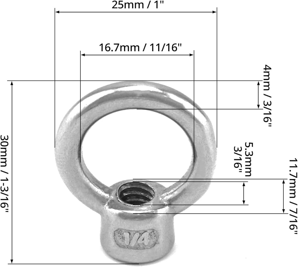 قائمة التعبئة: تتضمن 4 قطع من صواميل العين المصنوعة من الفولاذ المقاوم للصدأ 316.