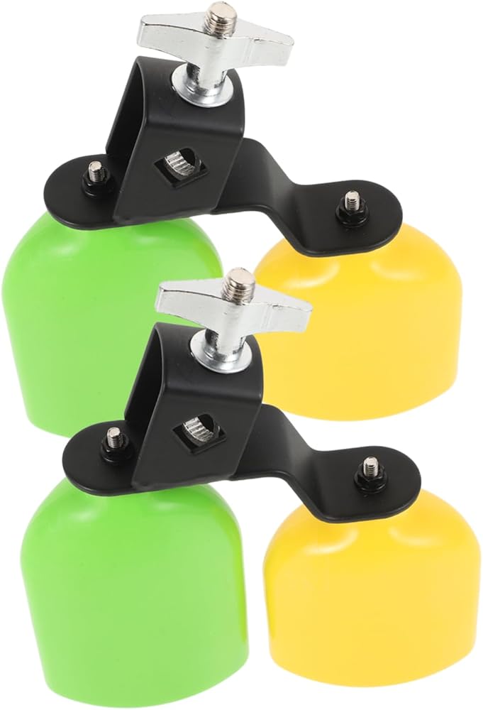 • جرس البقر مع التركيب: تضيف أجراس البقر الخشبية باللونين الأخضر والأصفر النابضة بالحياة عنصرًا مذهلاً بصريًا إلى مجموعة أدواتك، مما يجعلها مميزة، وأجراس البقر الإيقاعية