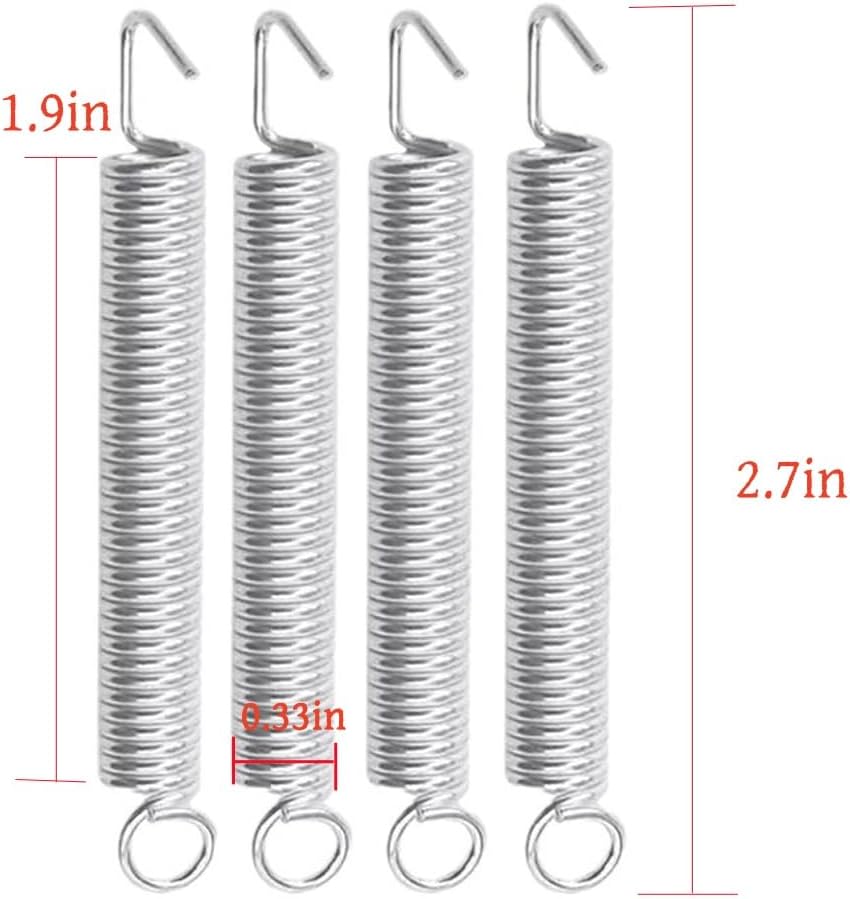 - الأبعاد: يبلغ طول النوابض حوالي 2.7 بوصة مع أطراف خطافية للتركيب الآمن والأداء الموثوق