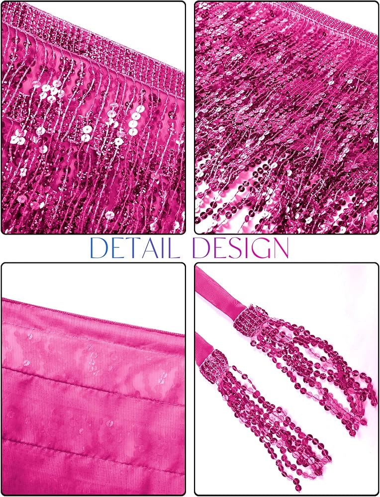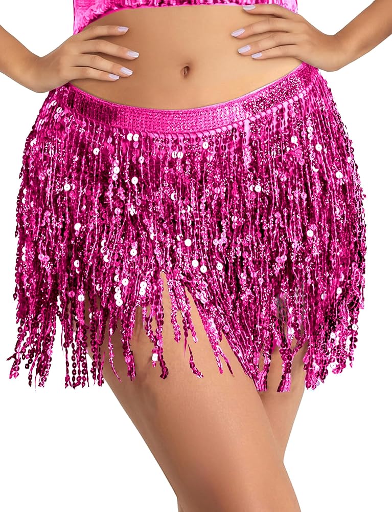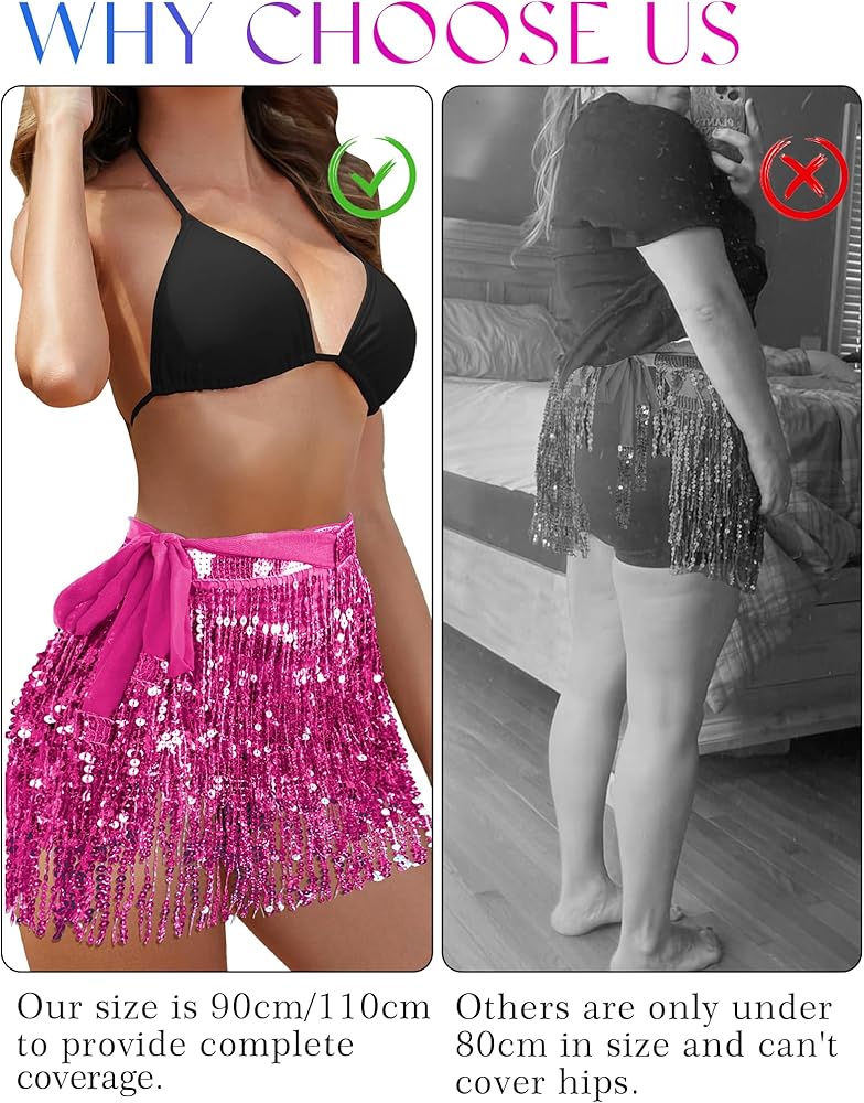 【استخدام واسع】 تعتبر التنانير النسائية ذات الشرابة ذات الشراشيب والترتر وشاح الورك للمهرجانات خيارًا جيدًا لك للمشاركة في الرقص الشرقي، والهالوين، وأعياد الميلاد، والرقص الشرقي، وحفلات الديسكو، والمهرجانات الموسيقية، والحفلات الموسيقية، والنوادي، والزومبا، وفصول اليوجا، وأزياء النادي، وحفلات العطلات، وحفلات الحنين إلى الماضي، والحفلات التنكرية، وأسبوع الروح. كن مركز الاهتمام في هذا الحدث مرتديًا التنورة الكلاسيكية ذات شرابة الترتر ولن يرفع أحد أعينه عنك.