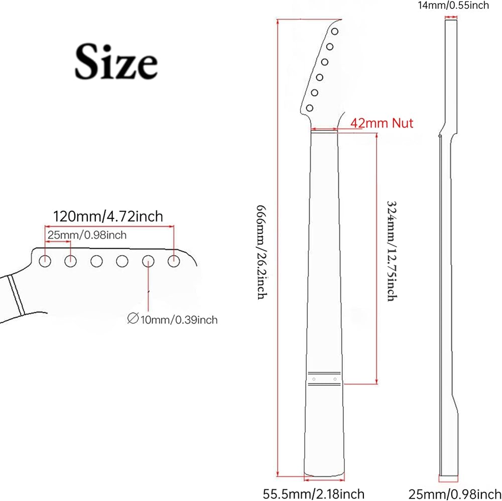 Size of Neck: The length of nut is 42mm. The neck heel width is 55.5±0.5mm and hole for the tuning machine is 10mm in diameter. For detailed size of various parts, please refer to the size picture.