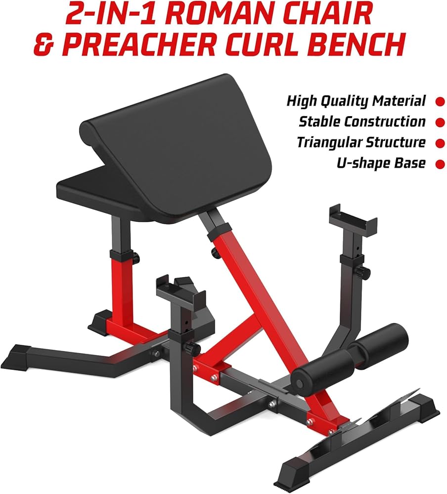 【تصميم 2 في 1 للذراع الكامل والقوة الأساسية】تجمع محطة اللياقة البدنية متعددة الاستخدامات هذه بين مقعد التجعيد والكرسي الروماني في وحدة واحدة موفرة للمساحة - مثالية لعزل العضلة ذات الرأسين وتقوية الساعدين وبناء عضلات أسفل الظهر والأرداف والساق. قم بتدريب عضلاتك بشكل أكثر ذكاءً وفعالية باستخدام آلة واحدة قوية.