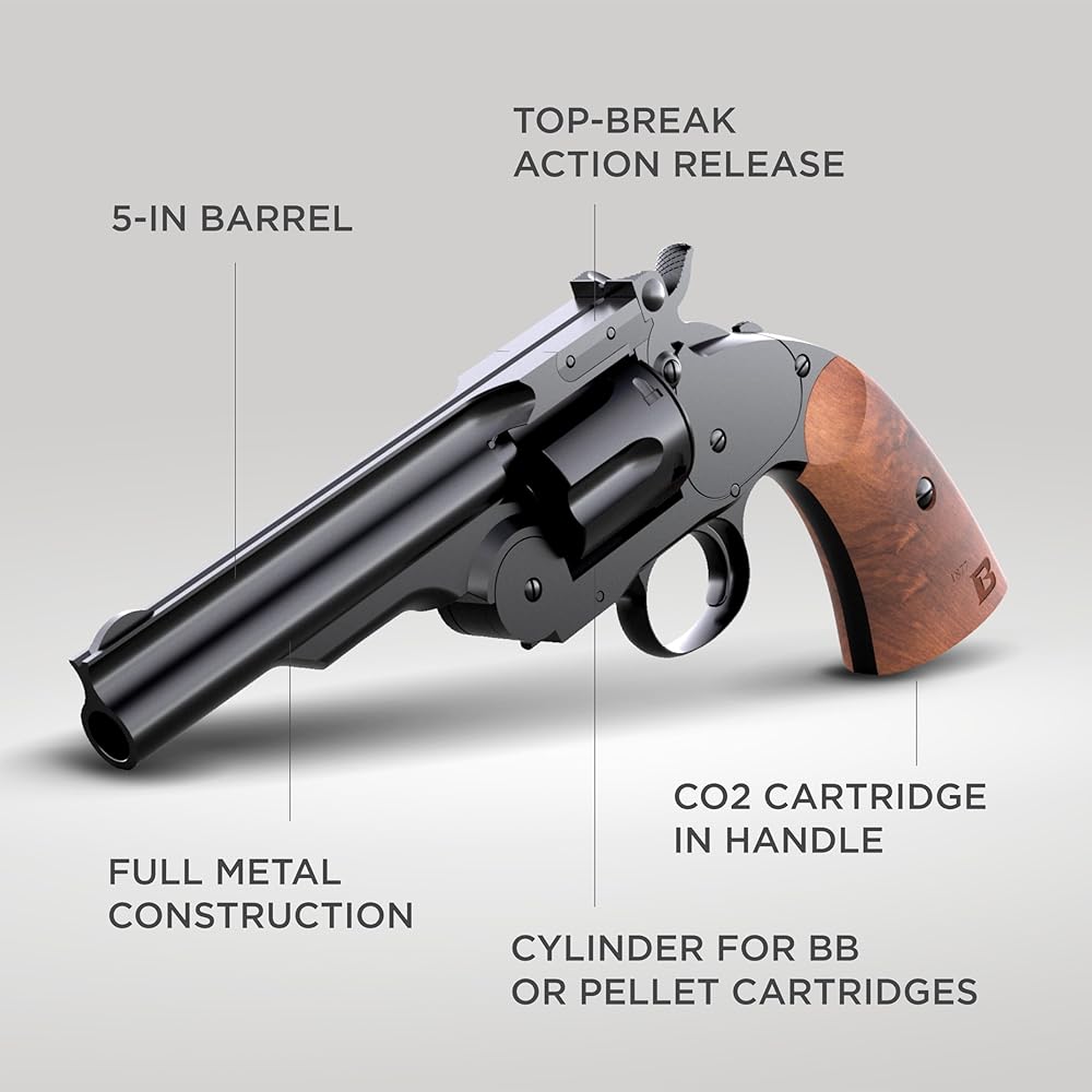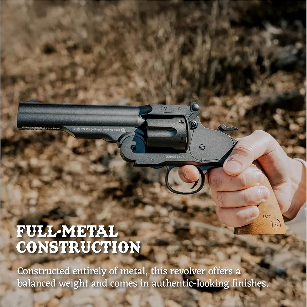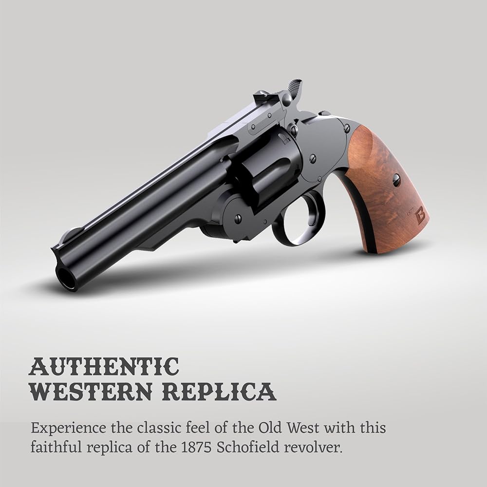 نسخة أصلية: إن Barra Airguns Schofield No. 3 Vintage هو ما تتخيله عندما تفكر في تبادل لإطلاق النار في الغرب المتوحش. هذا المسدس المتماثل يدور حول الاهتمام بالتفاصيل. تعد الدقة الحرفية لمسدس BB بمثابة نسخة طبق الأصل من مسدس سميث آند ويسون الكلاسيكي رقم 3 مسدس شوفيلد من عام 1875.