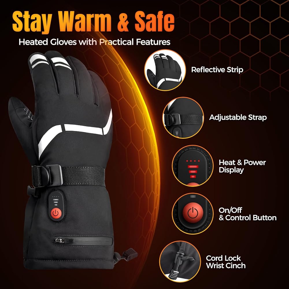 قفازات ساخنة هدايا للرجال والنساء، 7.4 فولت 3200 مللي أمبير في الساعة قفازات تسخين كهربائية قابلة لإعادة الشحن، قفازات تسخين مقاومة للماء تعمل باللمس للدراجات النارية والمشي لمسافات طويلة والتزلج والرياضة في الهواء الطلق