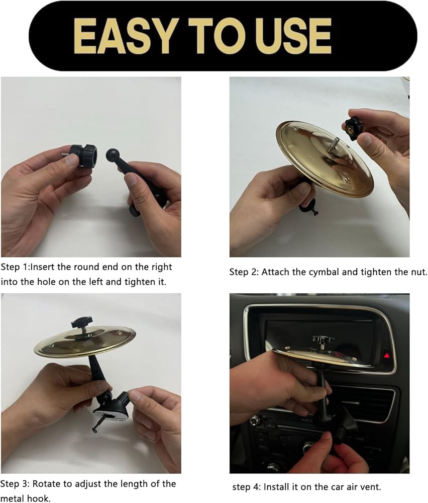 【Safe & Responsible Use】 For safety, we recommend using the car drum cymbal air vent only when the car is stationary. Designed for light tapping, they provide a musical experience without interrupting your driving safety.