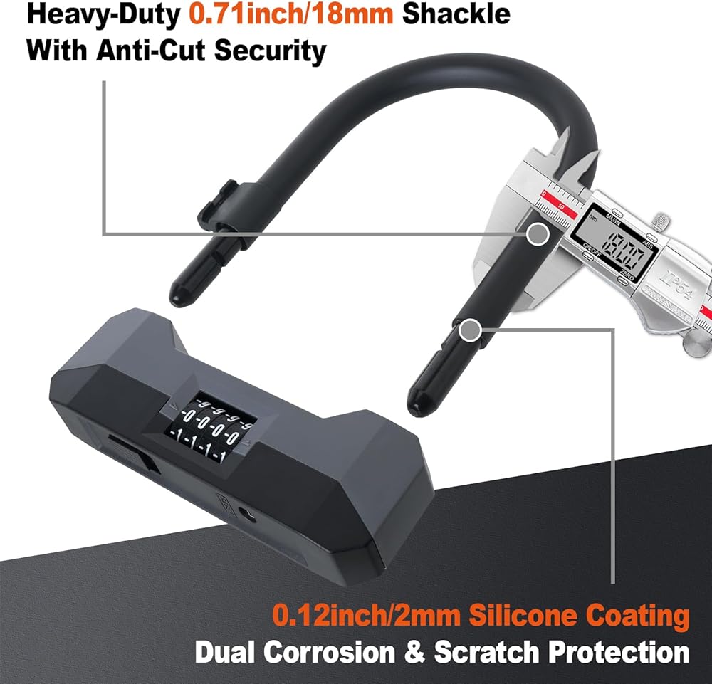 أمان عالي التحمل: يوفر قفل الدراجة على شكل حرف U هذا حماية قوية ضد السرقة من خلال القيد الفولاذي A3 عالي القوة مقاس 18 مم، المصمم لمقاومة القص الهيدروليكي ومحاولات القطع. إنه قفل متين للغاية مكون من 4 أرقام مع بطانة مطاطية، مما يجعله مثاليًا للاستخدام على الدراجة أو الدراجة الإلكترونية أو حتى كقفل للدراجات النارية. سواء كنت تبحث عن قفل دراجة مع مفتاح أو قفل دراجة مركب، فإن قفل الدراجة عالي التحمل هذا يضمن بقاء مقتنياتك الثمينة آمنة.