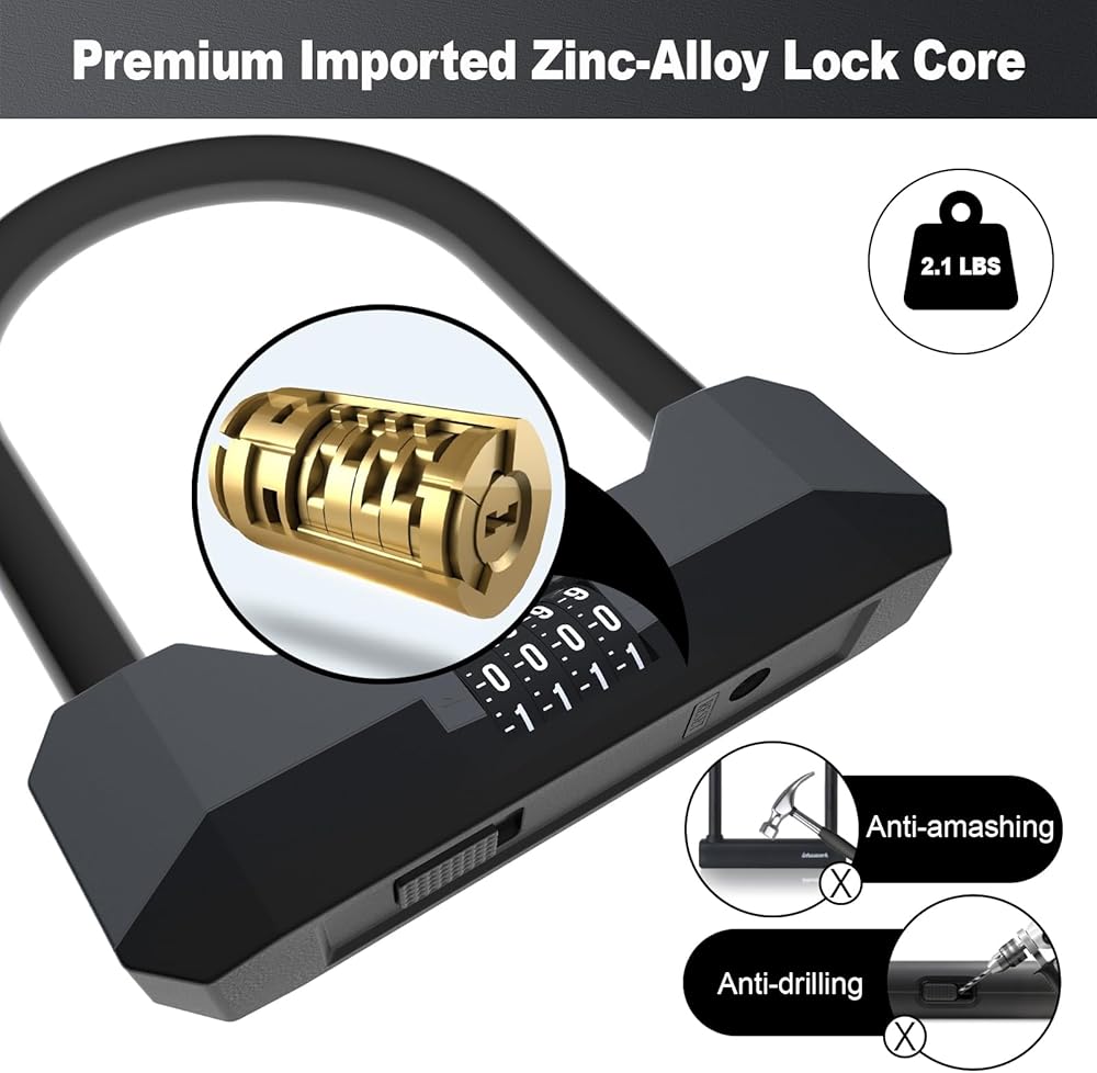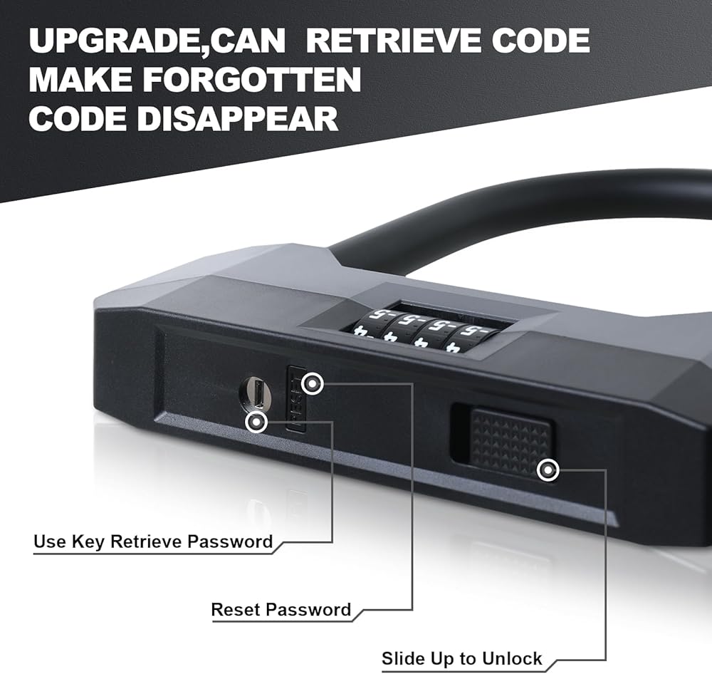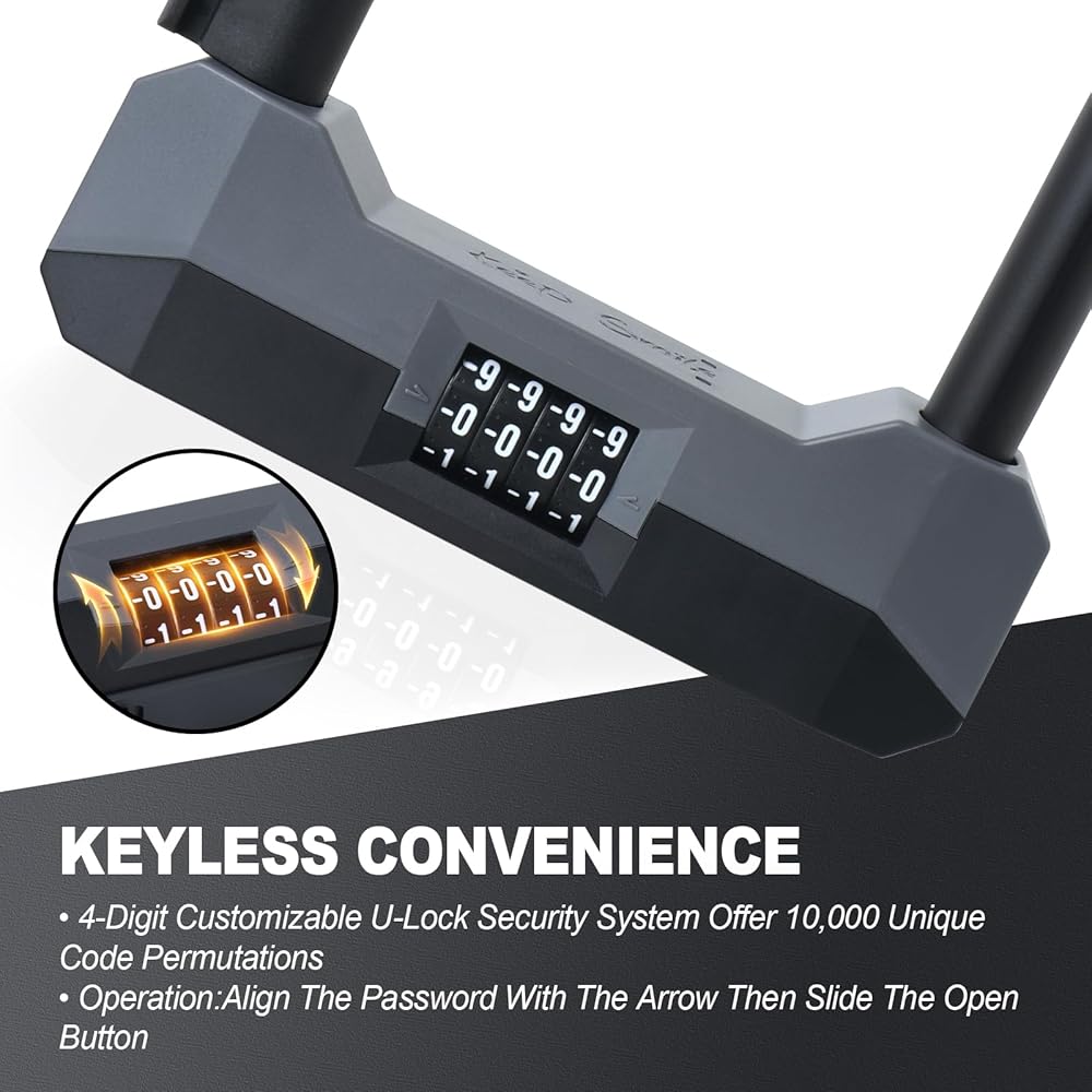 راحة بدون مفتاح: تتميز هذه الدراجة شديدة التحمل المضادة للسرقة على شكل حرف U بمزيج من 4 أرقام قابلة لإعادة الضبط، مما يوفر راحة بدون مفتاح دون الحاجة إلى حمل مفتاح. قل وداعًا للمخاوف بشأن الأقفال الصعبة أو المفاتيح المفقودة أو انقطاع اتصال المفاتيح. إنها مجموعة قفل دراجة آمنة وسهلة الاستخدام، مما يجعلها خيارًا رائعًا لأولئك الذين يفضلون دراجة هوائية ذات ميزات حديثة
