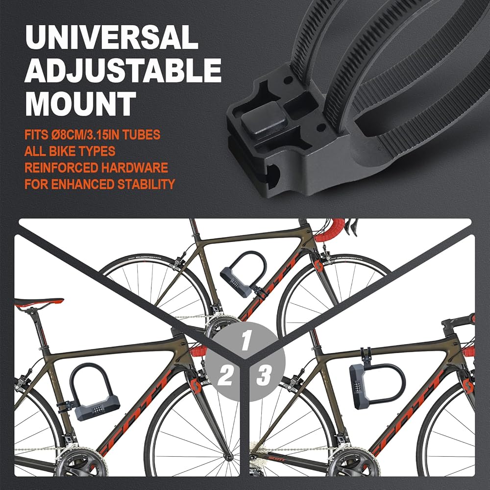 الاستخدام على نطاق واسع: مثالي لأولئك الذين يبحثون عن قفل قوي ومضغوط مع دعامة تثبيت لمزيد من الراحة، يمكن استخدام هذا القفل على شكل حرف U بمفرده أو لتأمين دراجات متعددة - عادةً من 3 إلى 5 في وقت واحد. إنه حل متعدد الاستخدامات لحماية الدراجات الإلكترونية والدراجات البخارية الكهربائية والدراجات النارية والبوابات والأبواب ورفوف الشواية وأي شيء آخر ذي قيمة. سواء كنت تسميه قفل الدراجة، أو قفل الدراجة، أو قفل الدراجة الإلكترونية، فإن هذا الجهاز عالي التحمل المضاد للسرقة هو خيارك الأمثل للحصول على أقصى درجات الأمان.