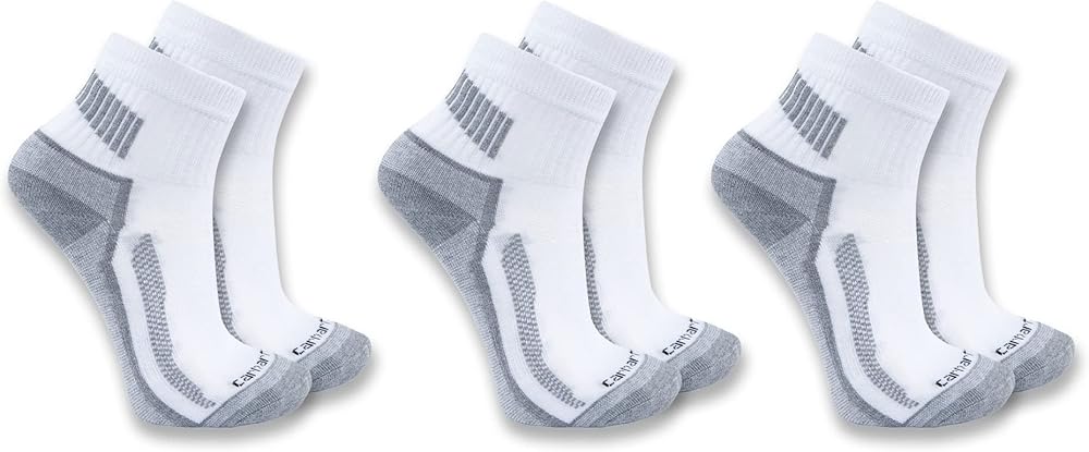 جوارب Carhartt Force متوسطة الوزن للرجال في عبوة من 3 قطع هي جوارب يومية يمكنك ارتداؤها على مدار العام وتأتي في 3 ارتفاعات: قصة منخفضة، وربع، وطاقم. تحارب هذه الجوارب الرجالية الروائح الكريهة وتحافظ على جفاف القدمين وراحتهما بفضل تقنية FastDry الماصة للعرق. تعمل البطانة المستهدفة على الكعبين والأقواس وأصابع القدم على حماية القدمين عن طريق امتصاص الصدمات وتقليل الاحتكاك. تسمح المداخل الشبكية للقدم بالتنفس بينما تحافظ جيوب الكعب المعززة على الجوارب في مكانها بشكل آمن لمنع الانزعاج. تُباع في عبوة من 3 قطع ومتاحة بمقاسين للرجال لضمان أفضل ملاءمة: كبير (مقاس حذاء الرجال الأمريكي 9-11.5) وX-Large (مقاس حذاء الرجال الأمريكي 12-14.5). تعرف كارهارت الفرق الذي يمكن أن يحدثه زوج جيد من الجوارب عند العمل في الهواء الطلق أو التنزه سيرًا على الأقدام والتخييم. جوارب Carhartt مصممة جيدًا ومصنوعة من مواد متينة وعالية الجودة، تحافظ على جفاف القدمين المجتهدتين وحمايتهما وراحتهما.