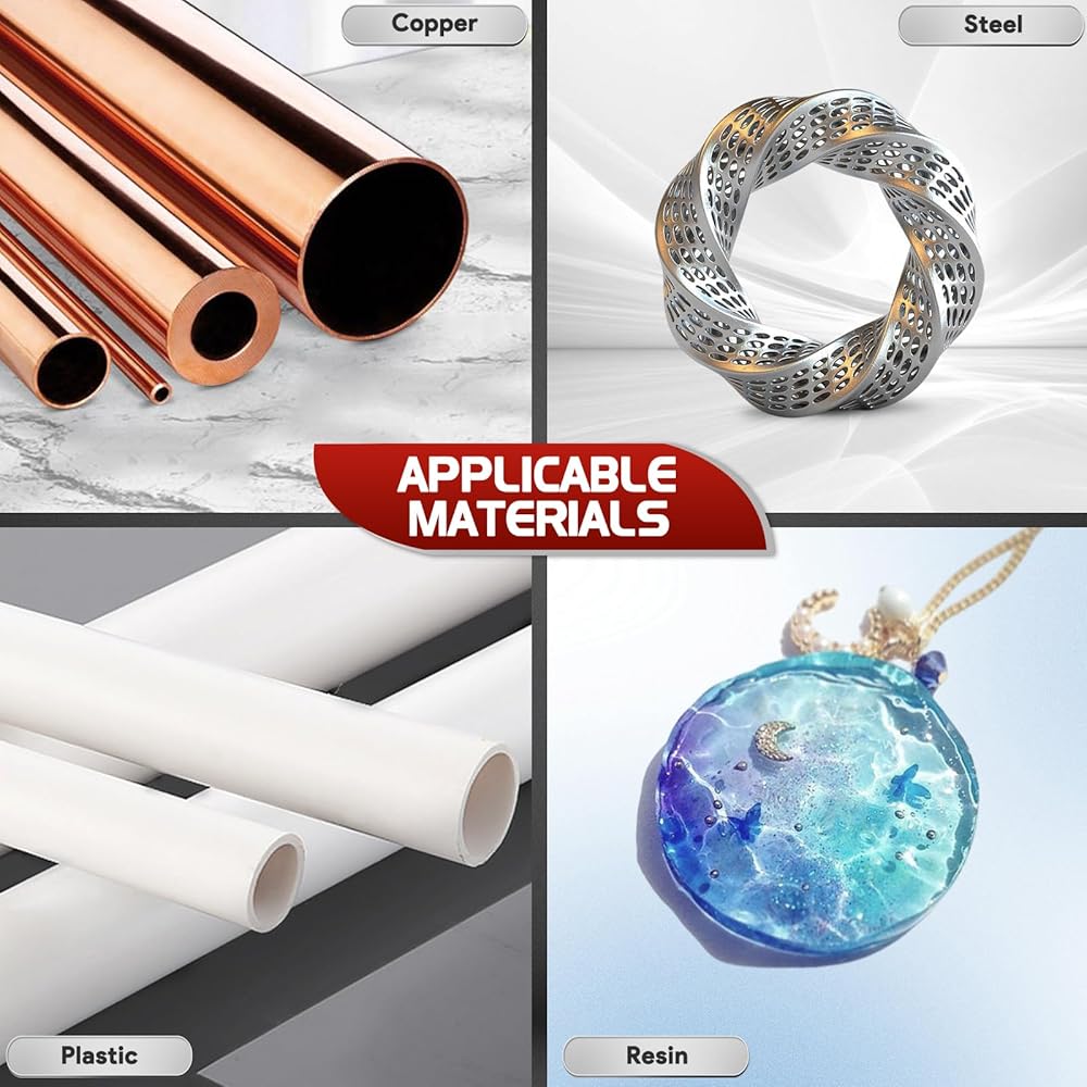 تتضمن العبوة: 1 مقبض ألومنيوم + 10 شفرات في 3 أوضاع: 5 قطع BS1010 للأنابيب البلاستيكية والمعادن الناعمة (النحاس والألمنيوم والفضة)؛ 3 قطع BS1018 مناسبة للفولاذ المقاوم للصدأ والبلاستيك الصلب، 2 قطعة BK3010 مناسبة للثقوب (القطر <1.5 مم). 3 أوضاع يمكن أن تلبي احتياجاتك المختلفة.