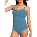 • تصميم فريد: تتميز ملابس السباحة تانكيني للفتيات بتصميم ملتوي من الأمام، وأشرطة قابلة للتعديل، ووسادات صدر قابلة للإزالة لمزيد من الراحة والمرونة. طباعة استوائية وكتلة ملونة تخلق مظهرًا صيفيًا أنيقًا.