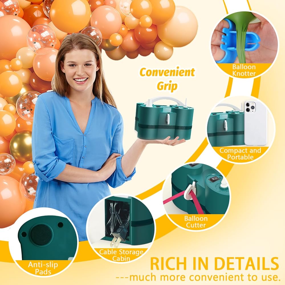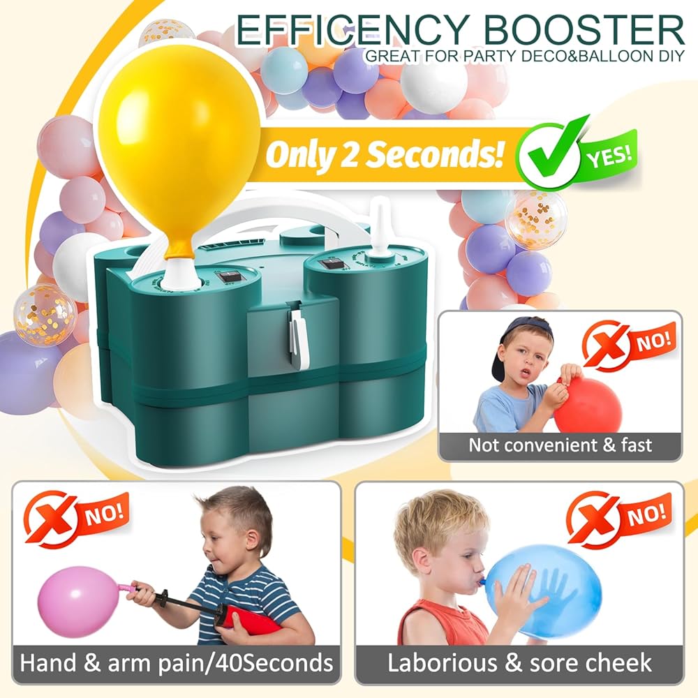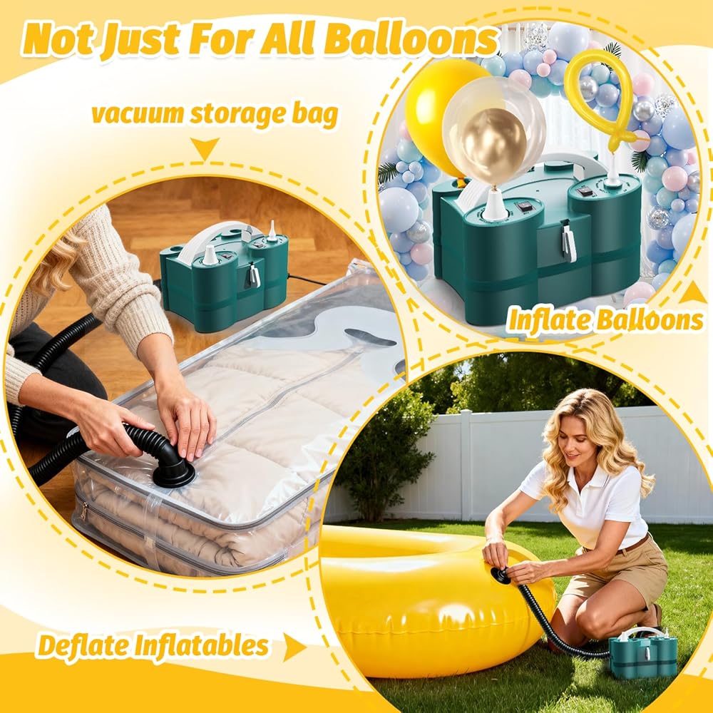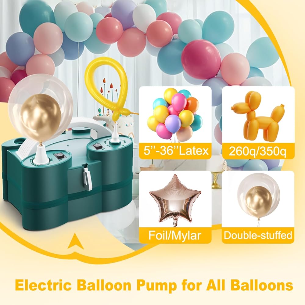• 【 منفاخ بالونات عالمي 】محركات مزدوجة عالية الطاقة مع منفذين: المنفذ 1: لبالونات اللاتكس القياسية (تضخم سريع الحجم). المنفذ 2: بالنسبة لـ 260Q، البالونات المعدنية والبالونات الصغيرة المحشوة والمزدوجة (تضخم ثابت). مضخة واحدة لجميع أنواع البالونات - لا حاجة إلى تبديل الأدوات.