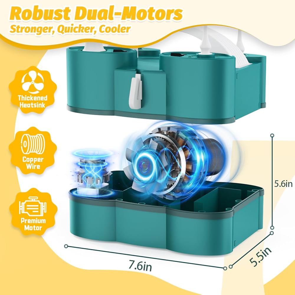 • 【 نفخ سريع بدون مجهود 】 تخلص من النفخ - يوفر المحرك القوي: بالونين في 3 ثوانٍ، وأكياس المكنسة الكهربائية يتم تفريغها من الهواء في 30 ثانية، ويتم نفخ عوامات حمام السباحة في 5 دقائق. كفاءة عالية، عملية خالية من الضجة.