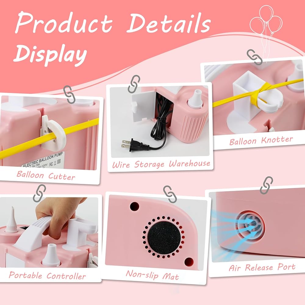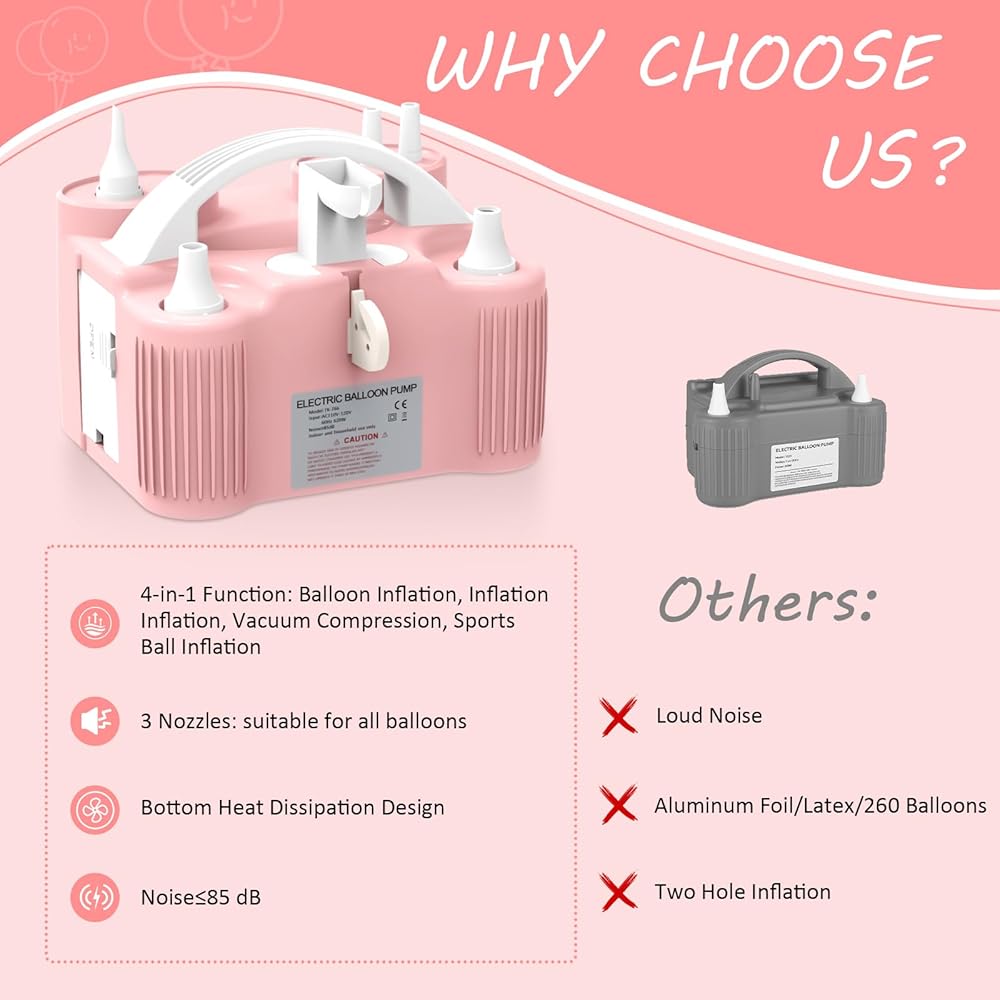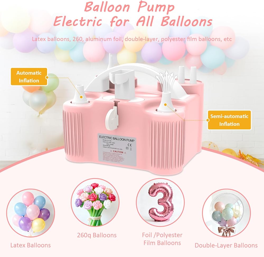 【منفذ نفخ ثلاثي مبتكر】 مضخة نفخ البالونات الكهربائية لدينا تعتمد مفهوم تصميم نفخ مبتكر بثلاثة منافذ، مع 3 منافذ نفخ قوية لتتمكن من نفخها في نفس الوقت، وفوهتي نفخ دائريتين لبالونات اللاتكس مقاس 5-36 بوصة، ومنفذ نفخ نحيف لنفخ بالونات 260q، وبالونات طويلة، وبالونات رقائق الألومنيوم، وبالونات مزدوجة الطبقات. إنه يلبي جميع احتياجات نفخ البالونات بكفاءة وسهولة ويزين حفلتك!