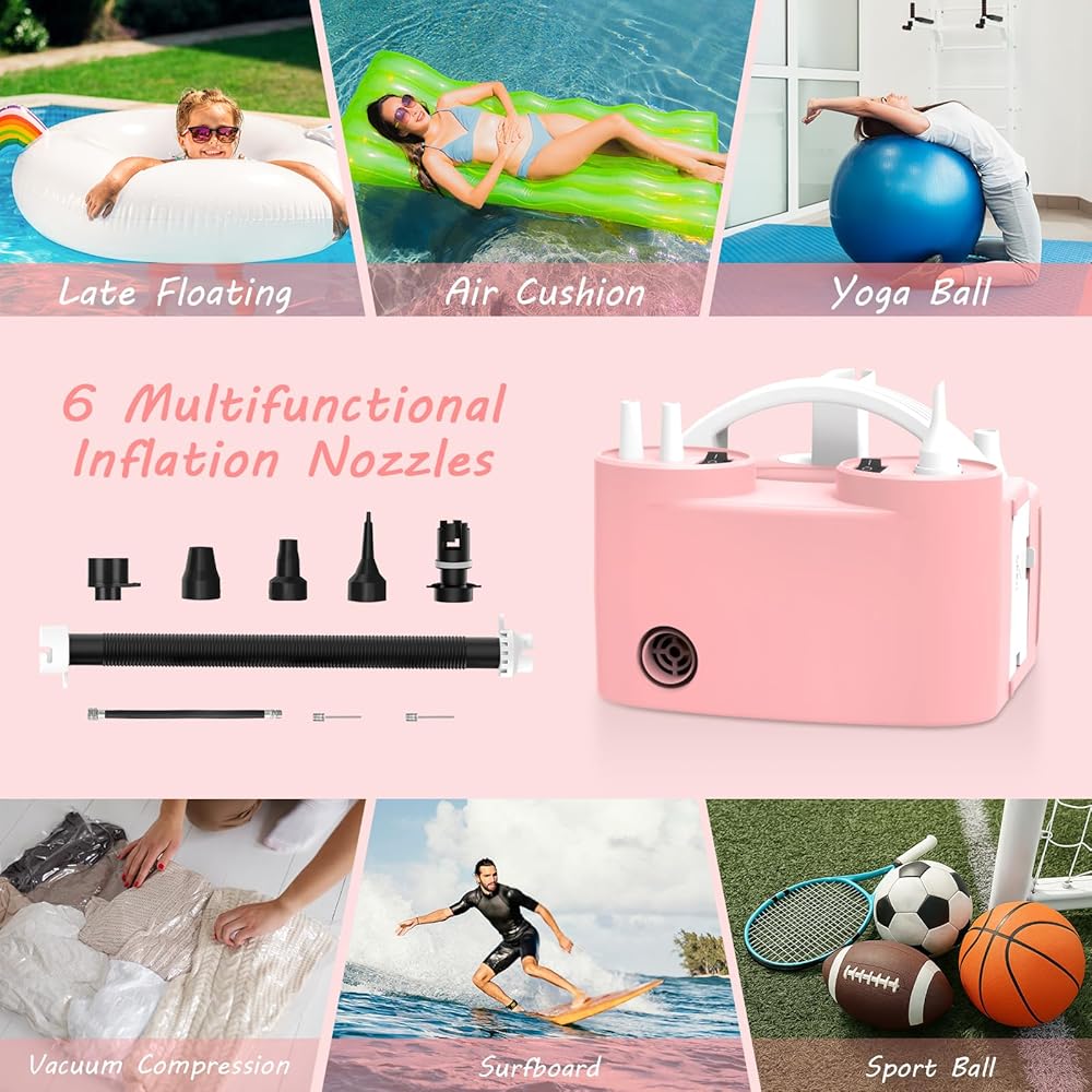【مرافق الدعم الكاملة】 تأتي مضخة البالونات الكهربائية مع مجموعة كاملة من الملحقات، بما في ذلك 5 فوهات نفخ، وإبرتين لنفخ الكرة الرياضية، وخرطوم كرة واحد، وخرطوم تمديد واحد، وقاطعة بالون واحدة، وعقدة واحدة. قم بنفخ وسائد الهواء وحلقات السباحة وكرات اليوجا وألواح ركوب الأمواج وكرات كرة القدم وكرات الرجبي وكرات السلة والكرات الطائرة بسرعة. بالإضافة إلى ذلك، تتميز مضخة البالونات الكهربائية الخاصة بنا بوظائف استخلاص هواء ممتازة، مما يوفر ضغطًا مناسبًا لتخزين ملابسك.