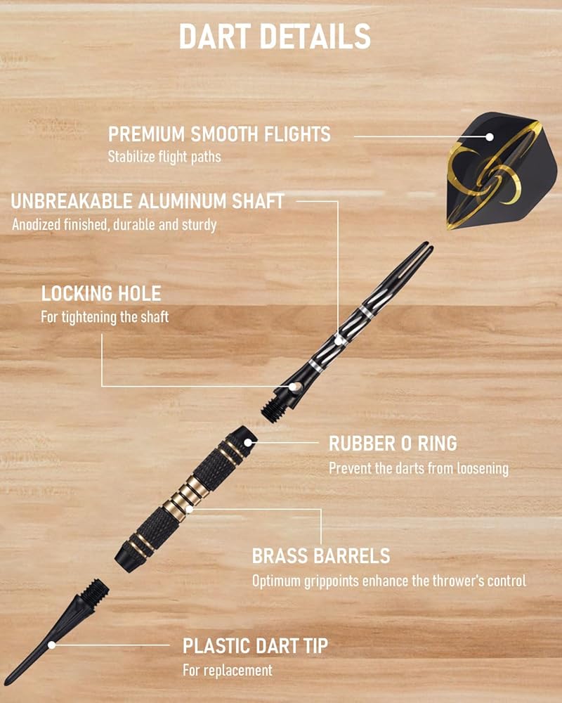Durable Plastic Tips: Reinforced darts plastic tips ensure compatibility with electronic dartboards, preventing damage to the board while maintaining secure sticking.