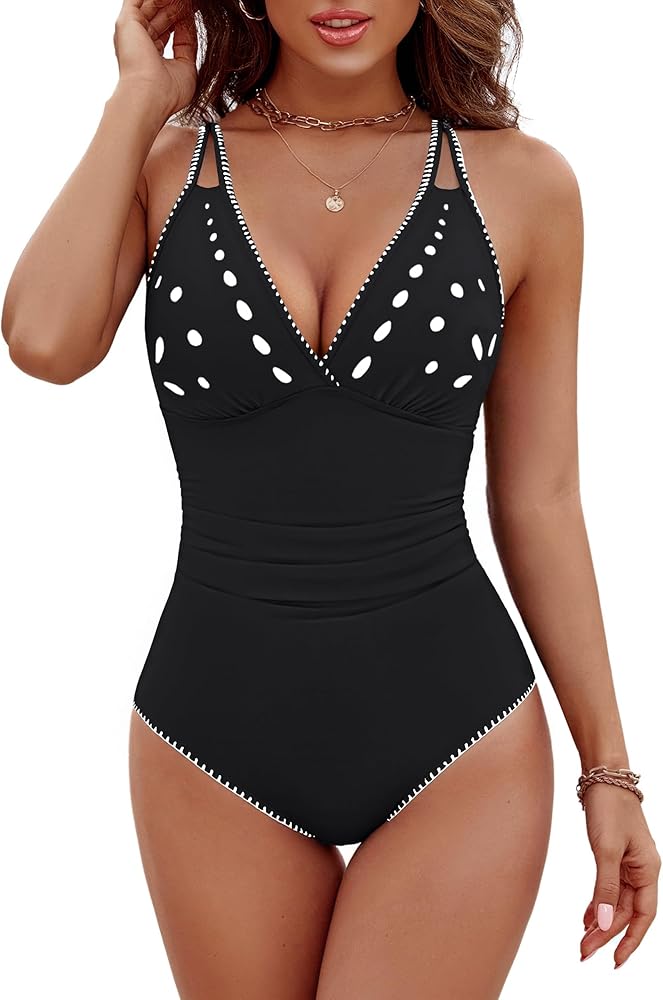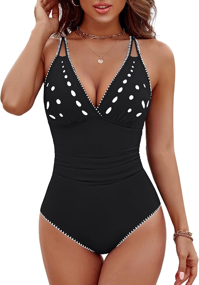 • الدعم والجزء العلوي الآمن: تمنحك الأشرطة الخلفية المتقاطعة القابلة للتعديل لبدلة السباحة هذه للسيدات دعمًا قابلاً للتخصيص، خاصة للصدر الممتلئ. توفر الرقبة العميقة على شكل حرف V والألواح الجانبية الواسعة تغطية إضافية لتقليل حجم المعتوه الجانبي.