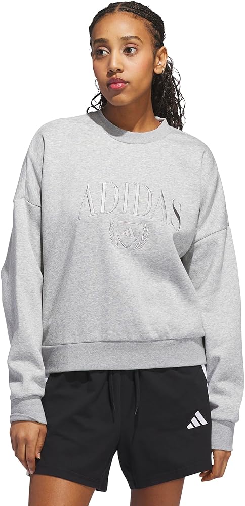 Stay warm and relaxed in the adidas graphic sweatshirt. Crafted from soft fleece, it delivers an extra-snuggly feel perfect for chilly days. The loose fit offers a modern, laid-back silhouette, and the ribbed crewneck keeps its shape wear after wear. A playful holiday graphic on the chest adds a festive touch, and the kangaroo pocket provides a convenient spot for small essentials.