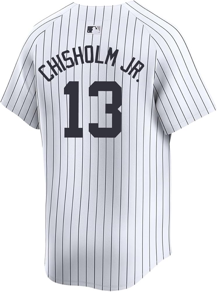 Show your support for Jazz Chisholm Jr. with this authentic New York Yankees home jersey designed specifically for young fans. This classic white pinstripe jersey features the iconic Yankees styling that has become synonymous with baseball excellence. Perfect for kids and youth aged 8-20, this jersey lets young fans represent their favorite player whether they're at the ballpark or playing with friends. The jersey displays Chisholm Jr.'s name and number, making it instantly recognizable to fellow baseball enthusiasts. Crafted to match the traditional Yankees home uniform design, this jersey captures the spirit of the Bronx Bombers while providing comfort for active young fans. Whether it's for gameday, casual wear, or collecting, this official MLB merchandise is a must-have for any young Yankees supporter looking to showcase their team pride.