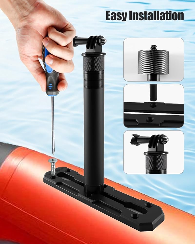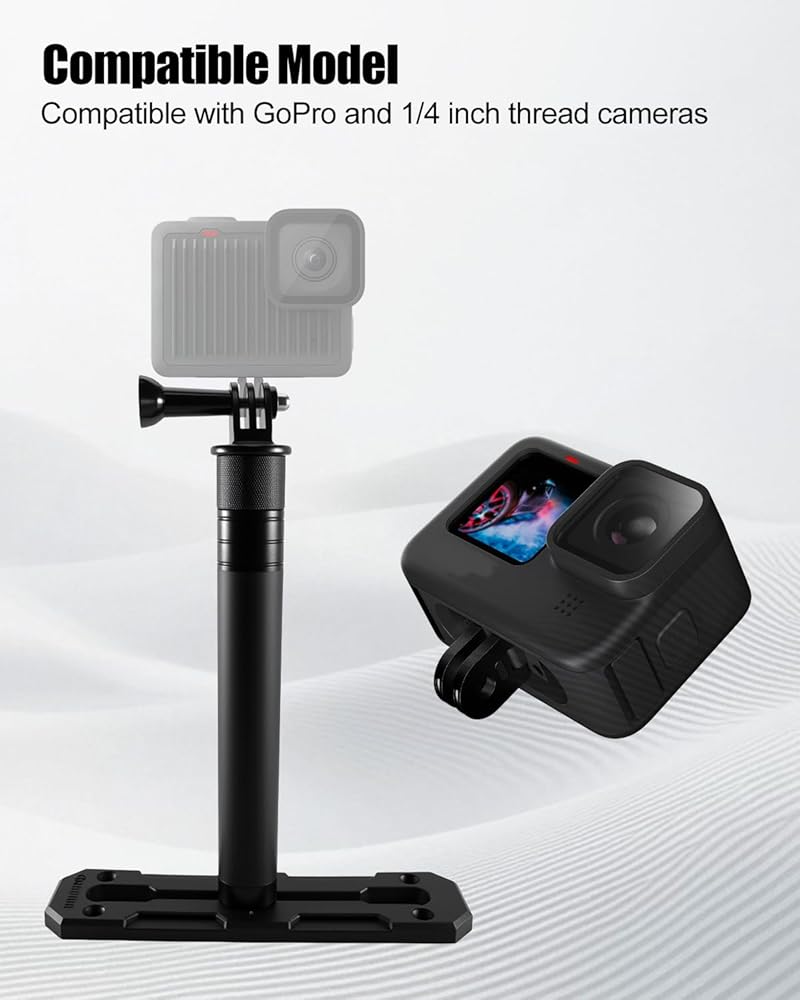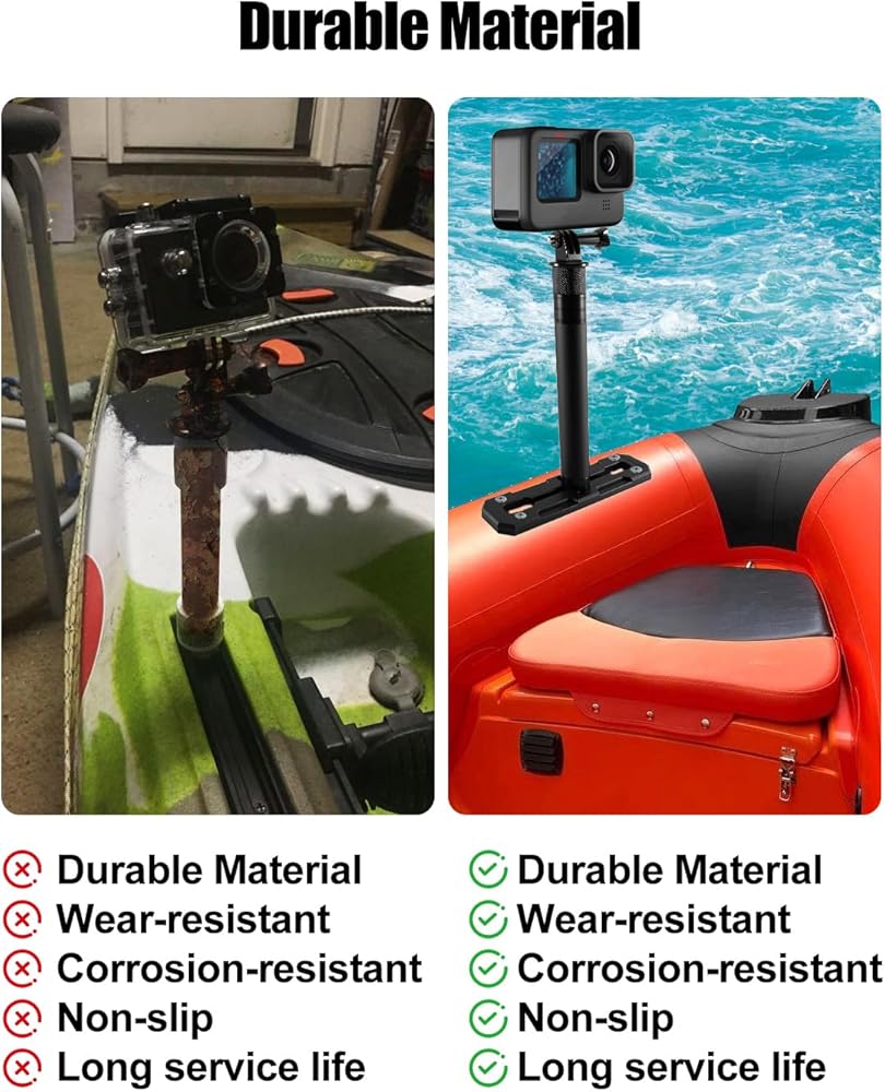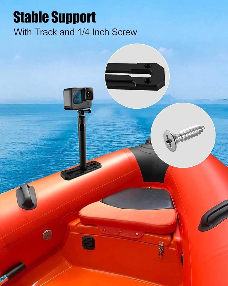 سهلة التركيب: يأتي دعامة كاميرا Kayak مع قضبان عالمية، ومسامير منزلقة، وقضيب تلسكوبي، ومسامير 1/4 بوصة، متوافقة مع معظم واجهات الكاميرا العملية، التثبيت بسيط، فقط قم بشد البراغي لتثبيتها، لا حاجة لأي أدوات معقدة