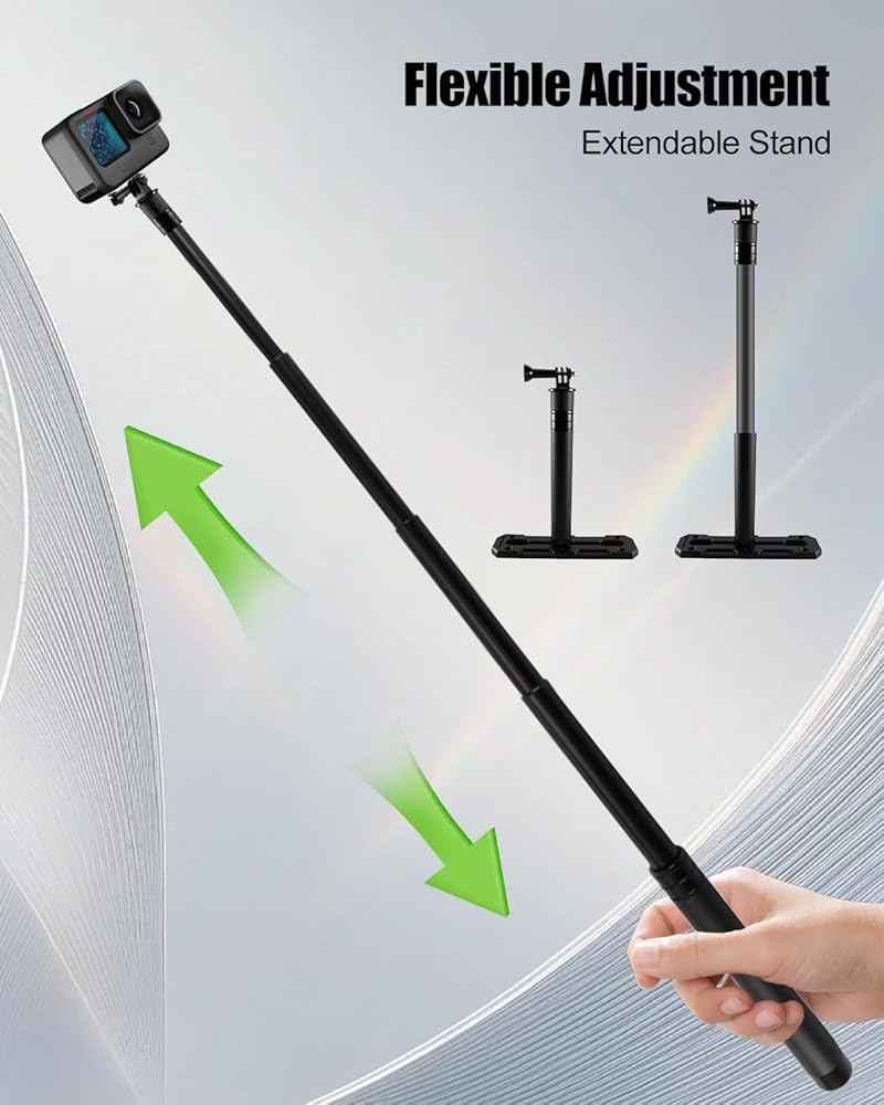 ارتفاع قابل للتعديل: يتميز حامل كاميرا Kayak Action بعمود أملس وقابل للتمدد يمكن تعديله حسب الارتفاع حسب الحاجة، وهو مناسب لمجموعة متنوعة من الاحتياجات، بما في ذلك التصوير الفوتوغرافي للمناظر الطبيعية ولقطات الحركة