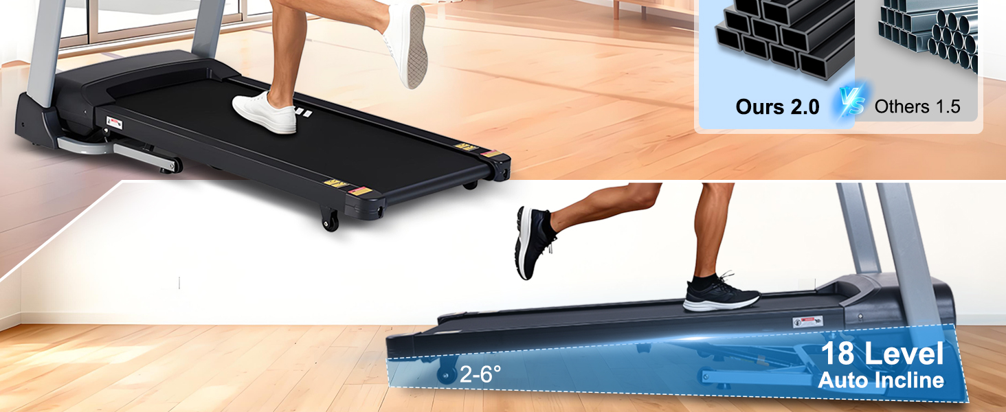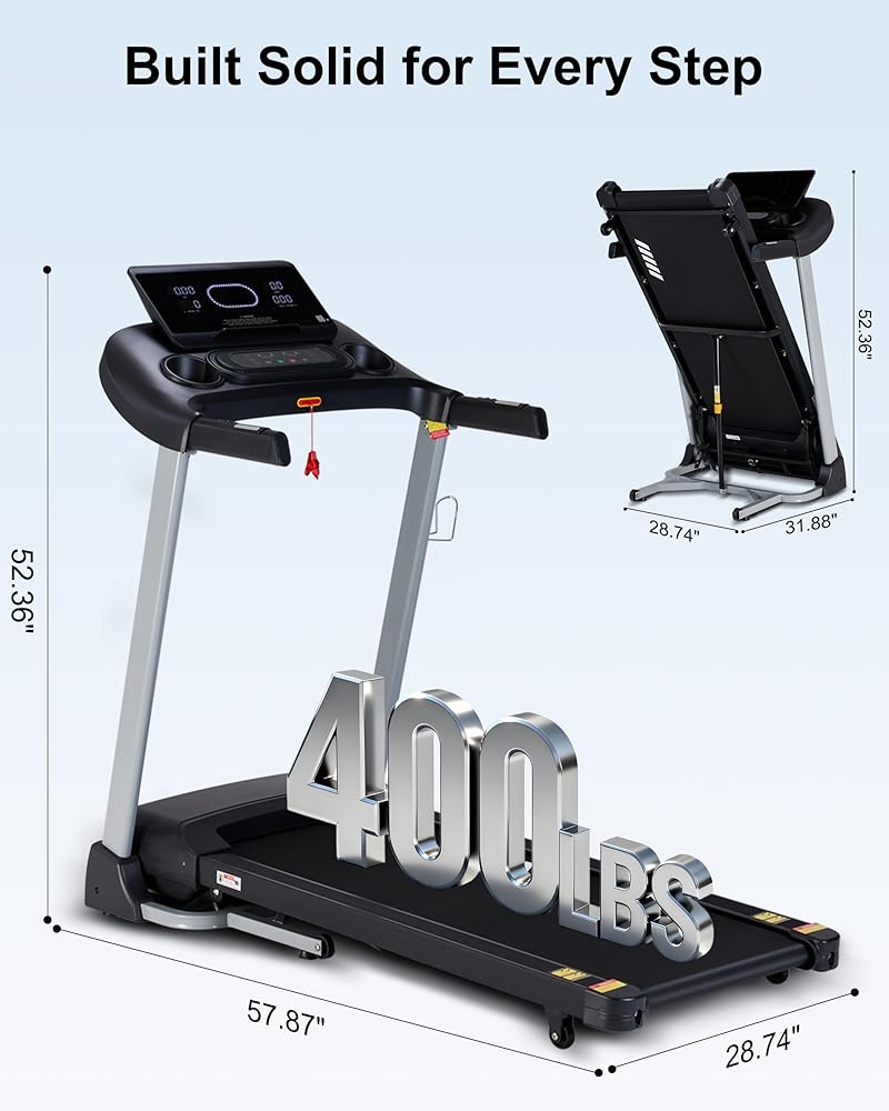 【جهاز المشي المائل بسعة 400 رطل】تم تصميم جهاز المشي شديد التحمل هذا بإطار فولاذي مقوى، ويدعم ما يصل إلى 400 رطل لاستخدام مستقر وطويل الأمد - مثالي لجميع مستويات اللياقة البدنية.